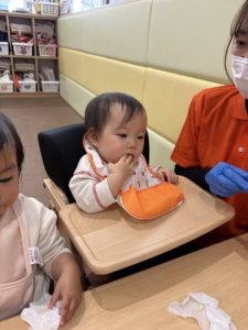 自分でおやつを持って食べられるんだよ!