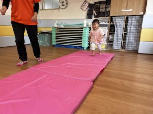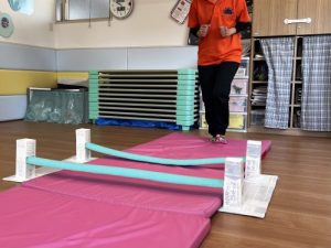 今の所、マットの感触はみんな平気なようなので今後も様々な体操を行っていきたいと思います。