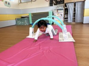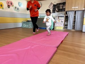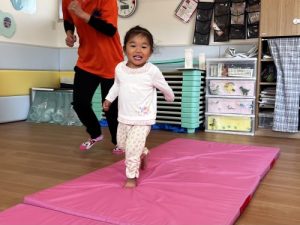 今日は体操カリキュラムをお届けします。今年度初めて経験するお友だちもワクワクしていたのでとても楽しい時間でした!