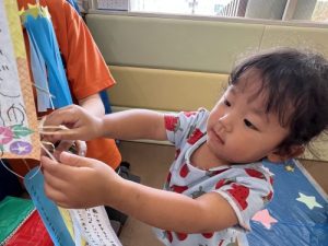 天の川を渡って自分で短冊を飾れることを知った子どもたちは、大興奮![]()
