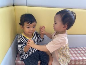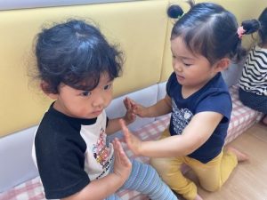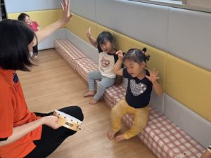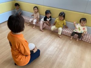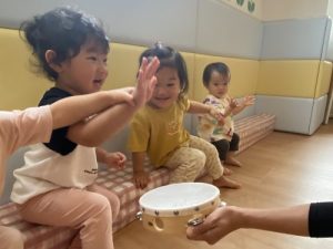音楽に合わせてお友だちと手を叩いてみました!!