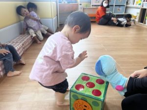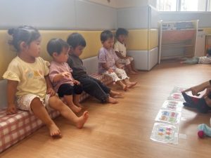 最初は保育者と一緒に答えていた子どもたちもだんだんと1人で答えられるようになってきました👏