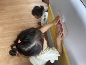 「What’s your name?」「I’m ⚪︎⚪︎」とお名前を言う練習をしています🎤