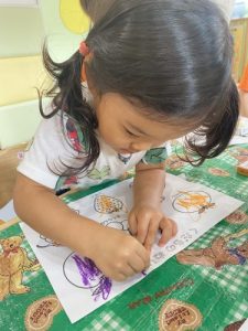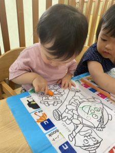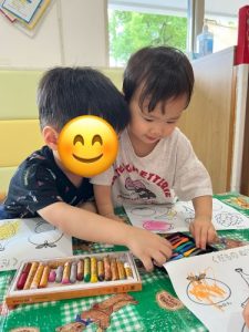 一生懸命に塗り絵をしているお友だちを発見💡