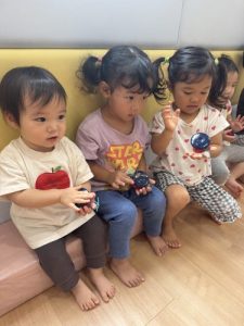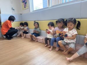 自分で持ってカスタネットを鳴らせることが嬉しかった子どもたちでした☺️