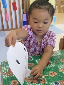 これが目でーこれはお口でーと、