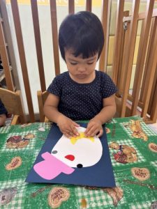 お顔のパーツは丸シールでつけたよ!