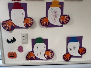 保育園のお部屋の中は、みんなのオバケの製作でいっぱいになりました!