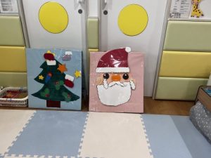 一昨日保育園のお友だちみんなでツリーとサンタさんを作りました!