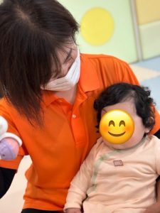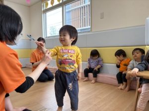 しかし、保育者と触れ合い遊びをして、楽しい事を見つけると夢中になって遊んでいました。