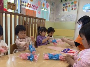 別日に朝の会でちょうちょを元気よく歌い、お花紙やストローを使ってオリジナルちょうちょ🦋を作りました。