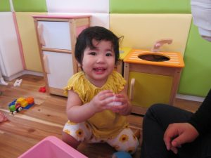お山が少し怖い、いちご組さんはニコニコでおままごと遊びです