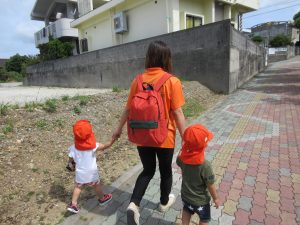 歩道の端を歩いたり、横断歩道を渡る前に確認をしたりと、ルールを守って歩くことの練習をしています。
