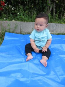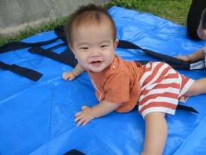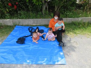 もも組さんは木陰にブルーシートを敷いてもらって、日向ぼっこをしました![]()