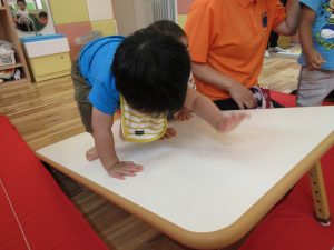 今週は、お部屋でテーブルですべり台を作って楽しみました![]()