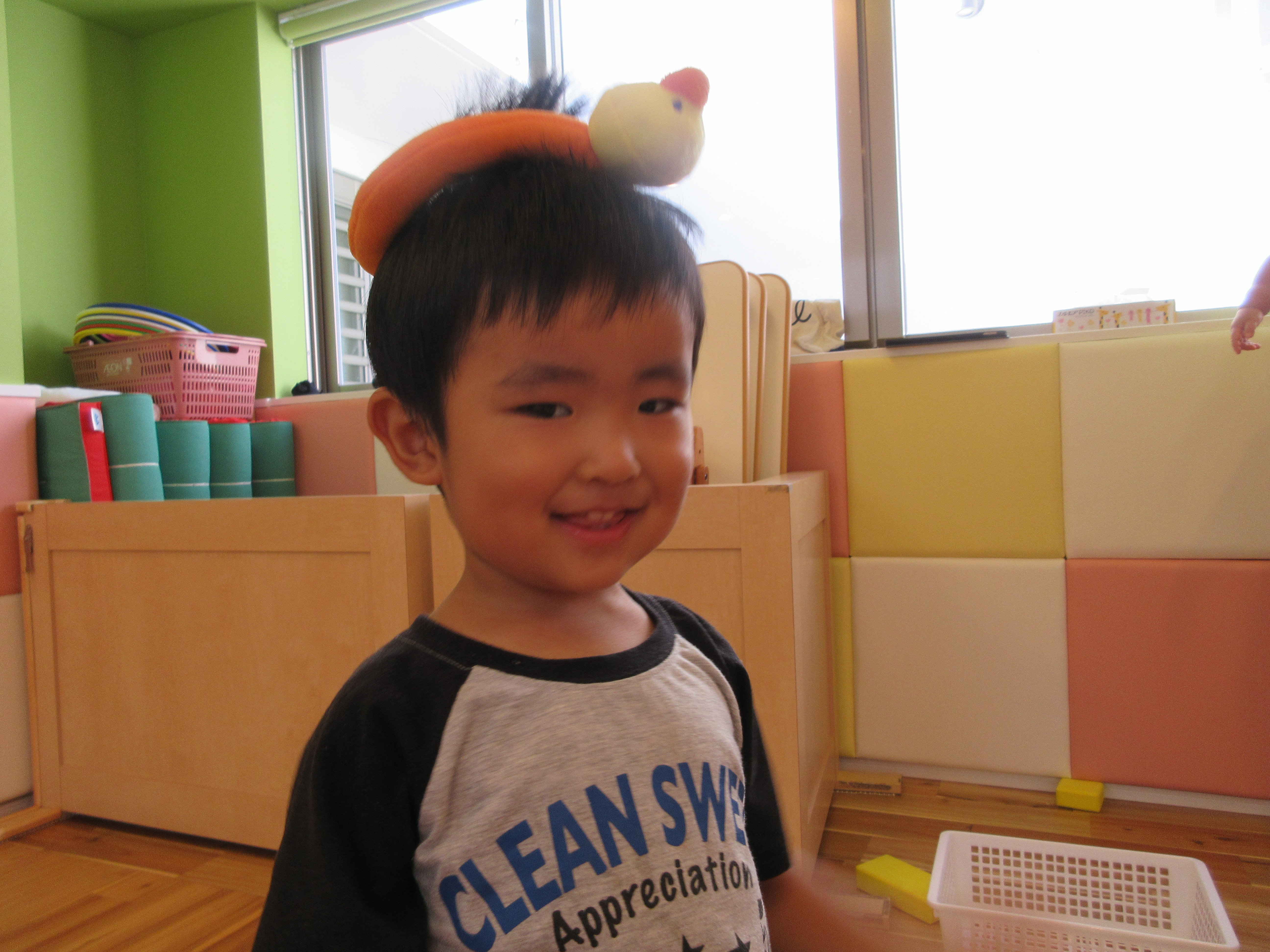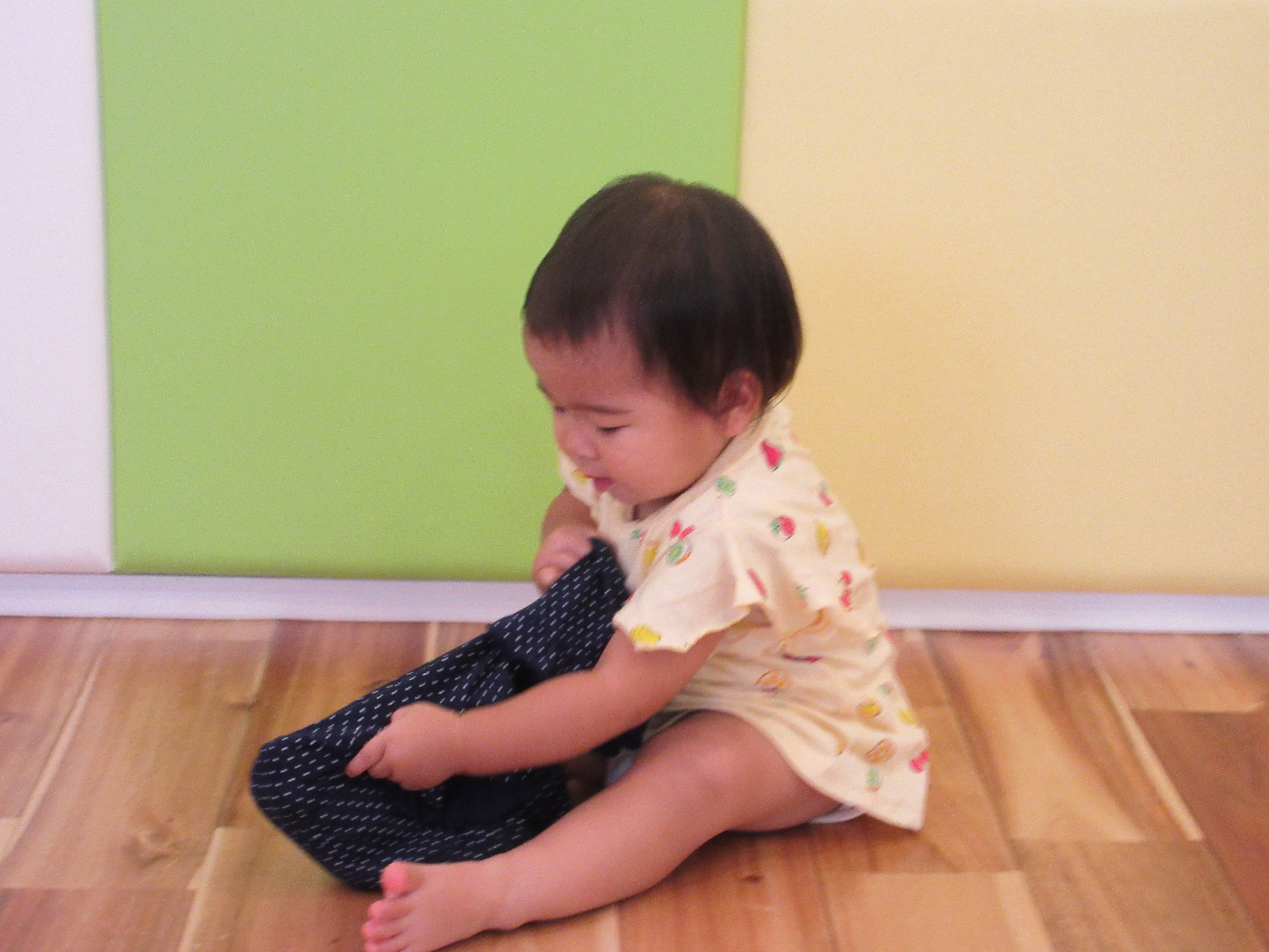 ジブンデ!と服を頑張って着ようとする頑張っているおともだち(^_-)-☆