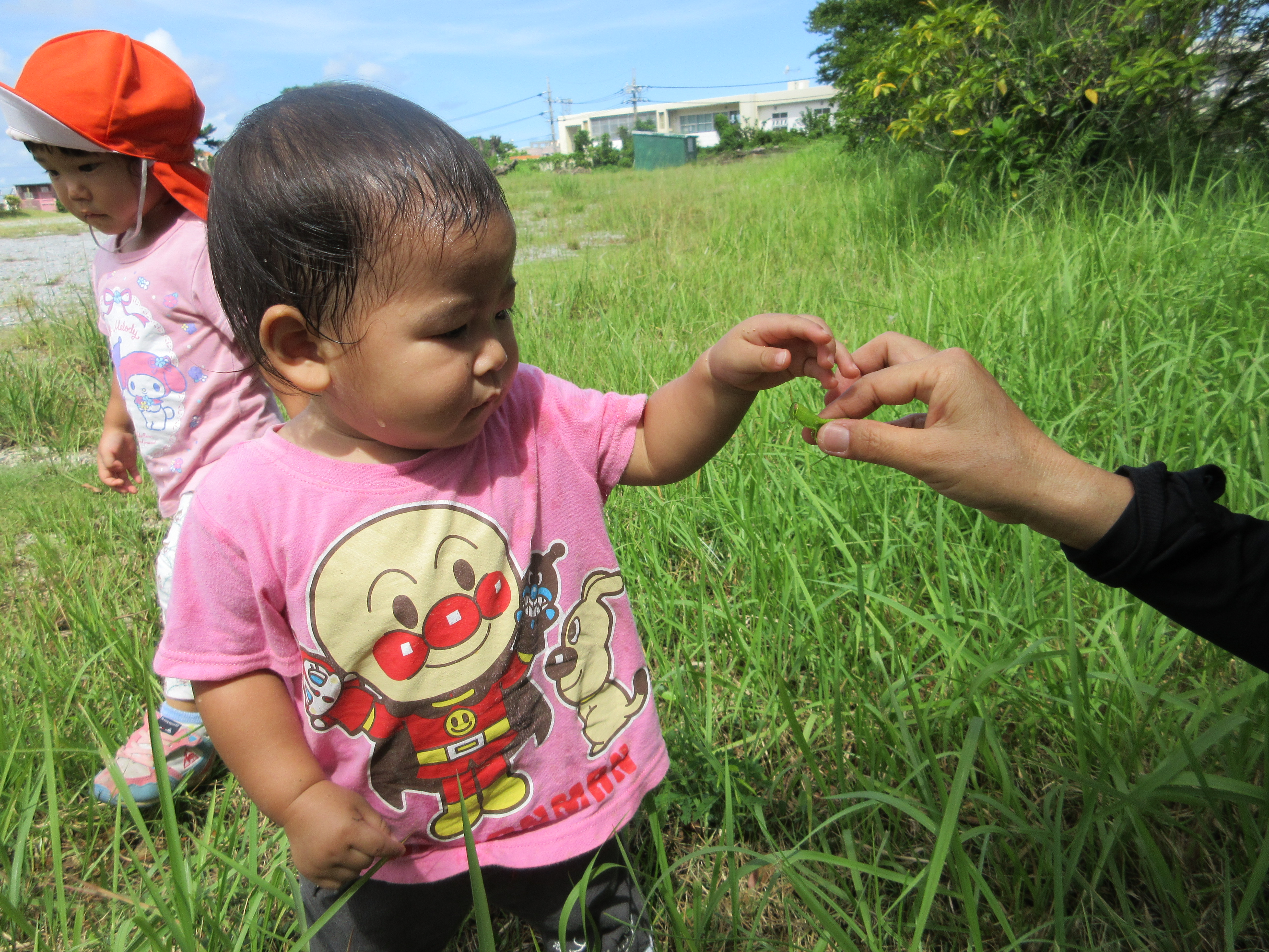 セミや、バッタを見つけていますよ。