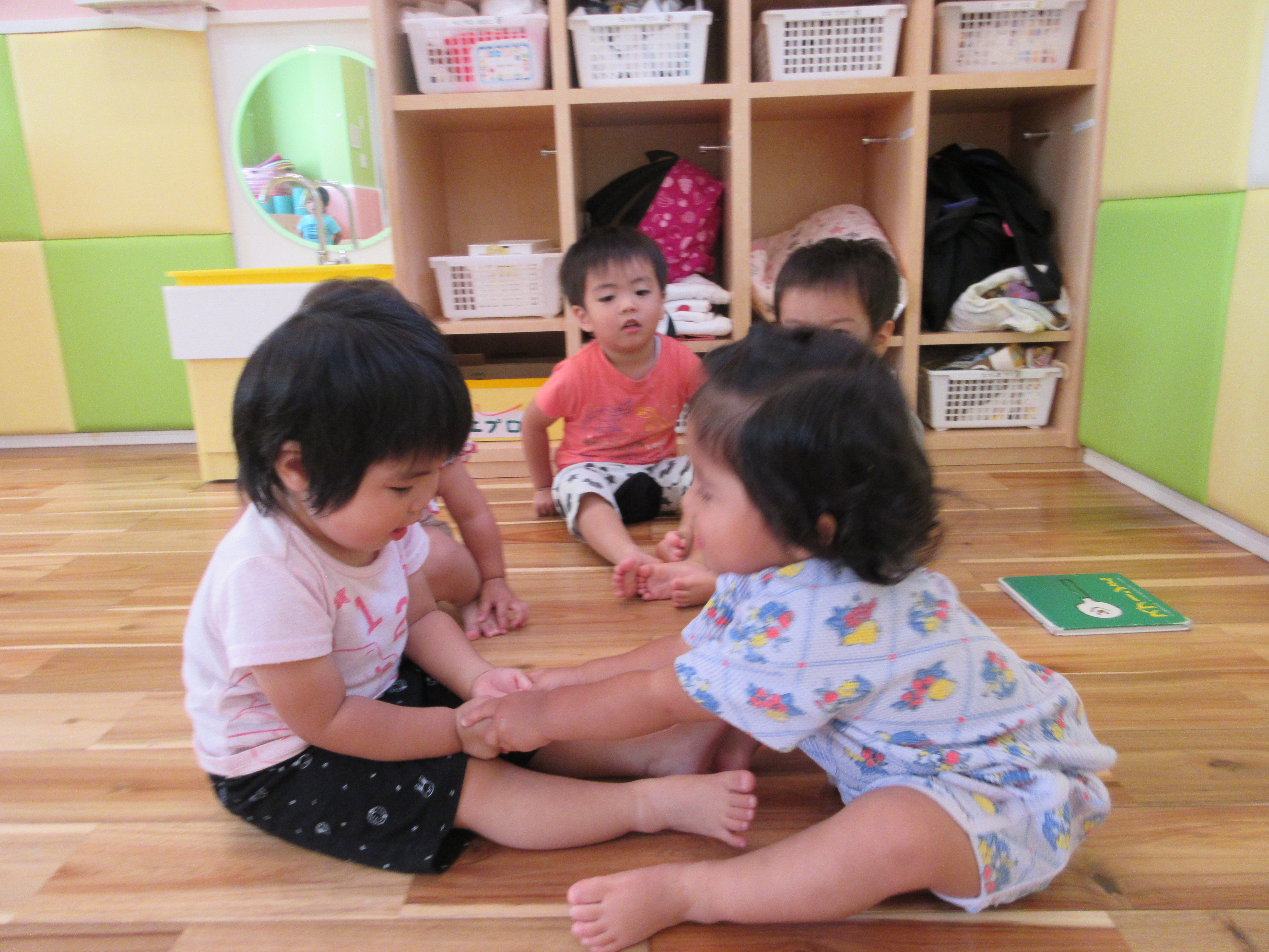 「おふねはぎっちらこ❣」とおともだちとペアになって遊んでいます。