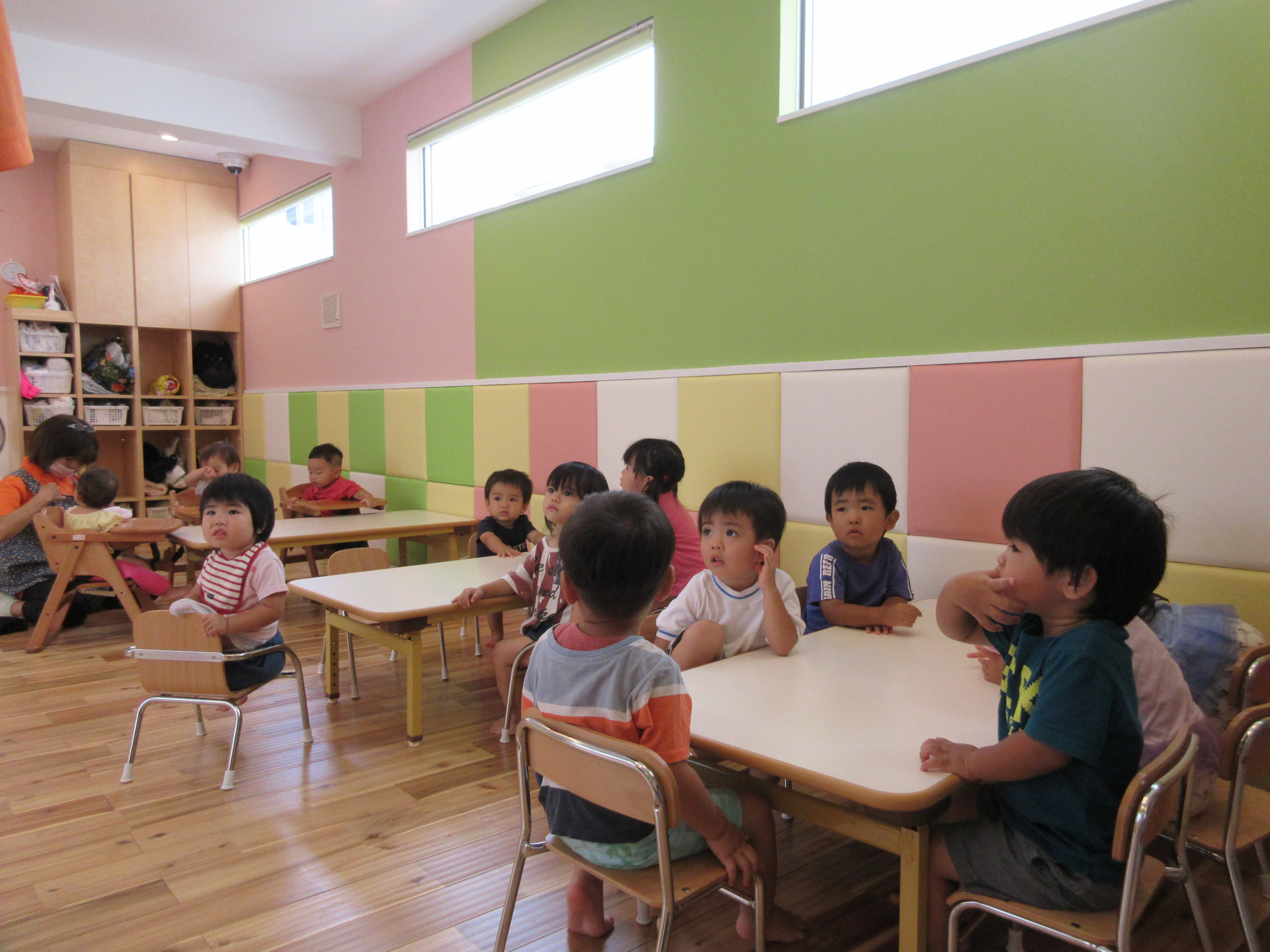 ばななさん、たまごさん、とうもろこしさん…たちが、「こんにちは!」と声を掛けると、殻や皮の中から顔を出してくれます。最後は、隠れていたお友達も顔を出してくれましたよ