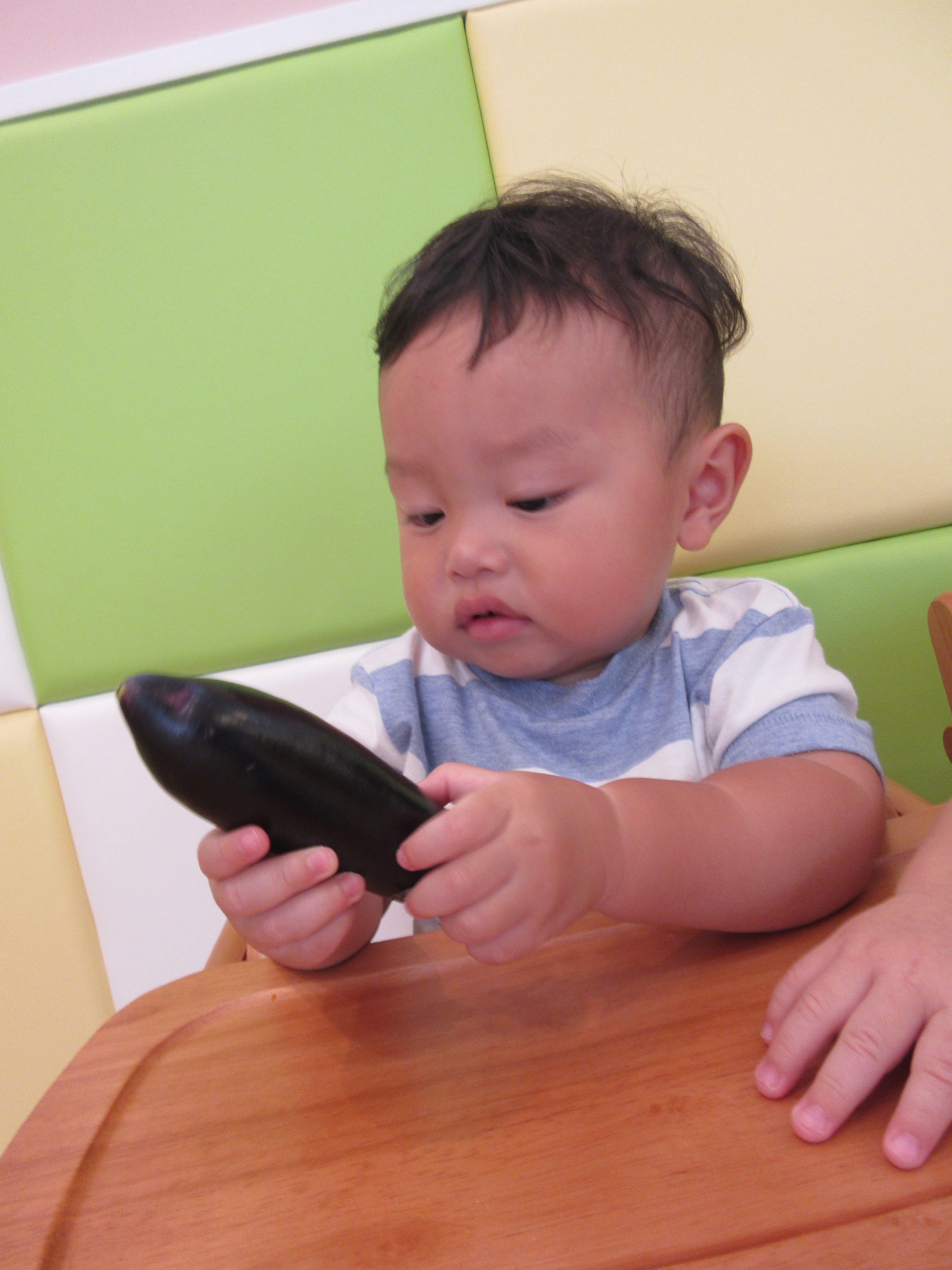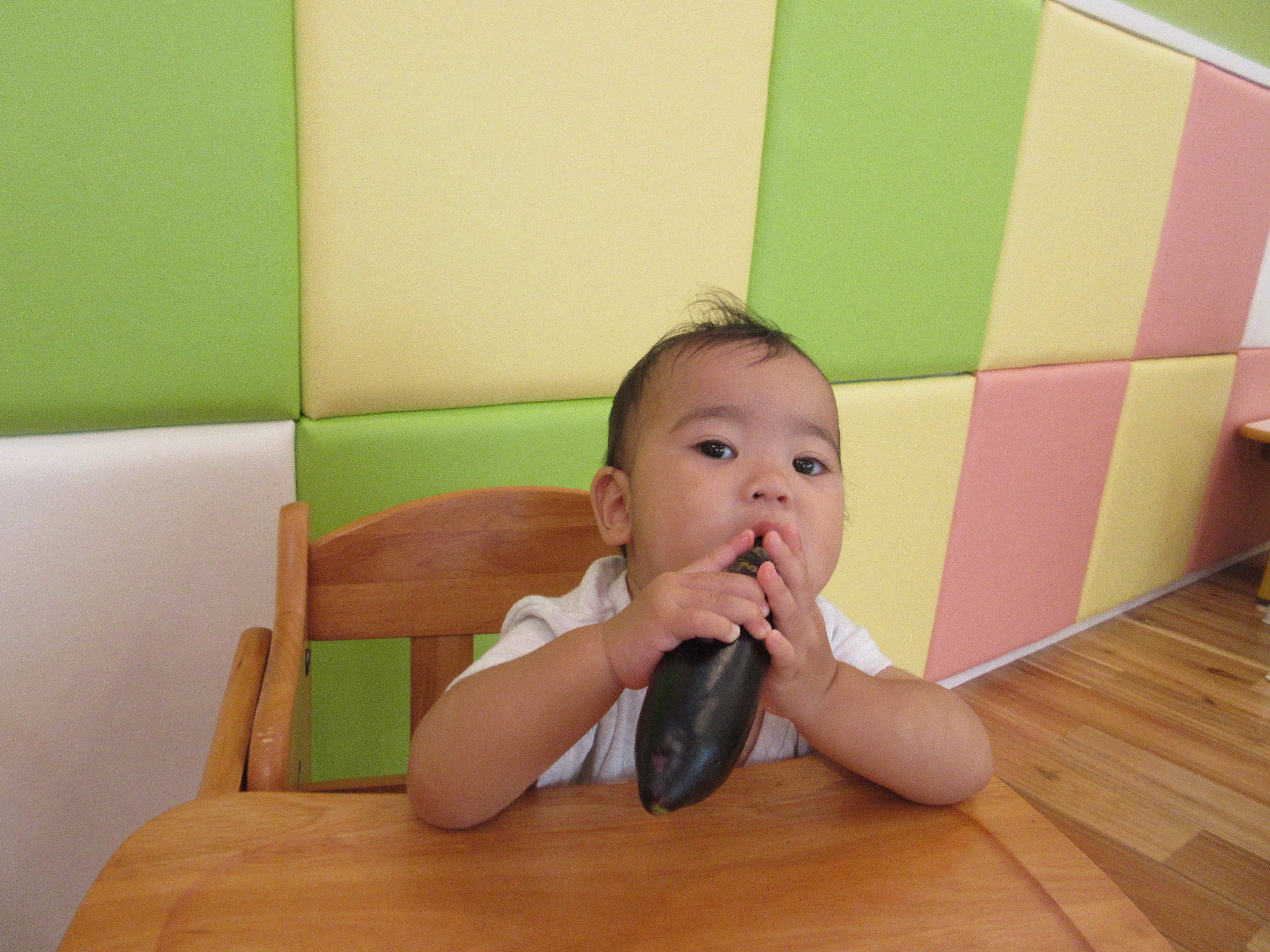 大きななすを見て、びっくりしているももぐみさんです![]()