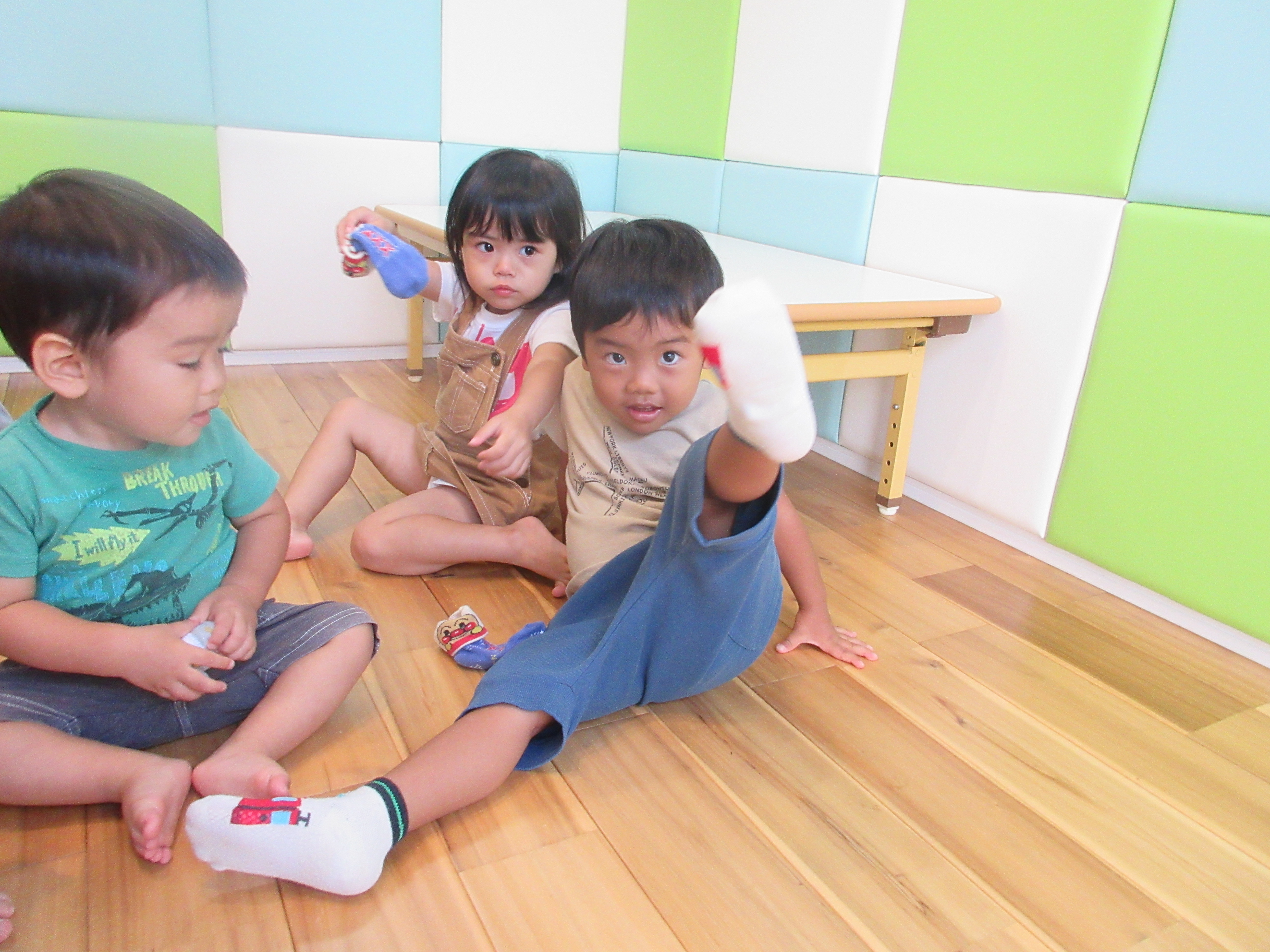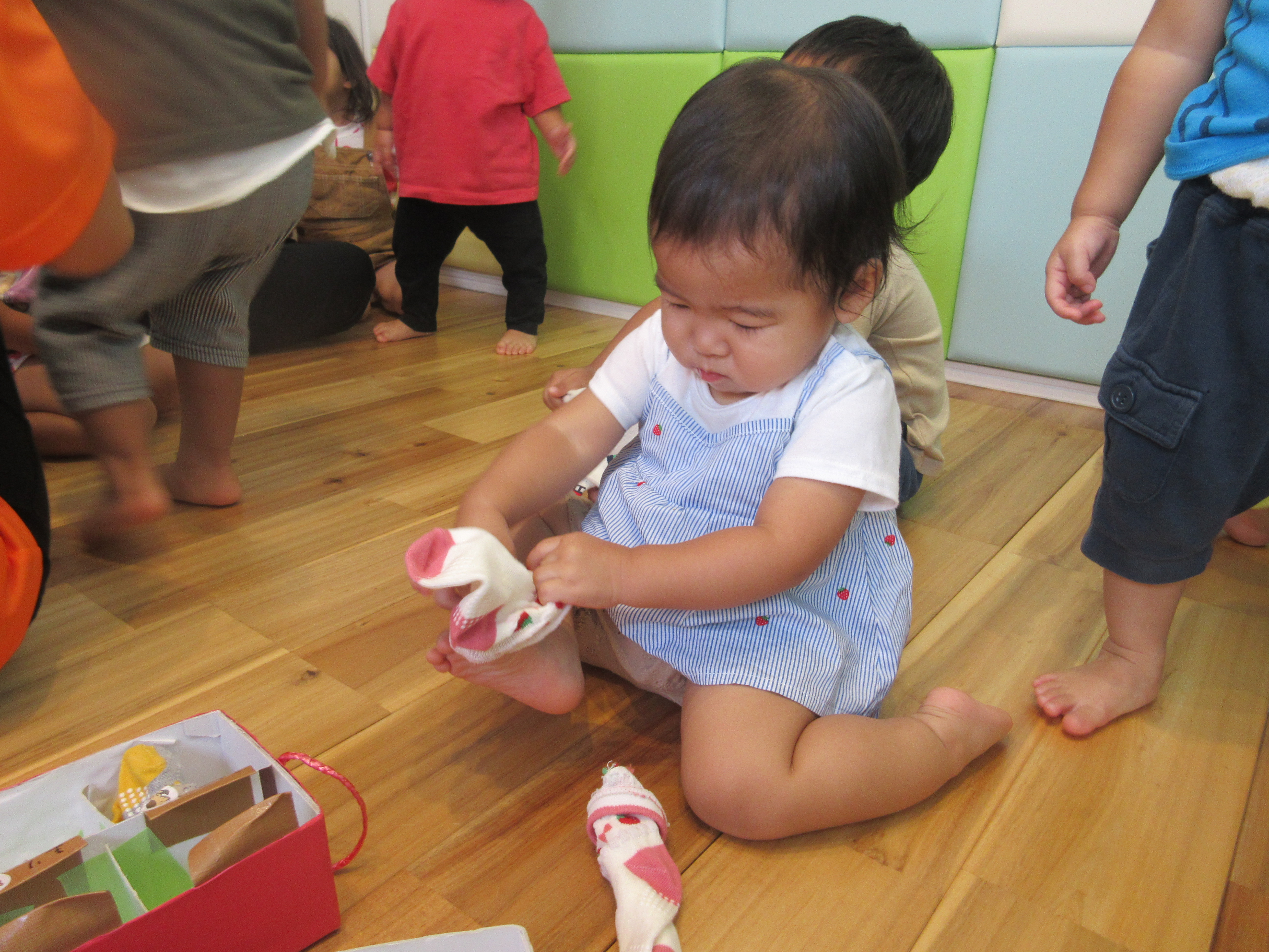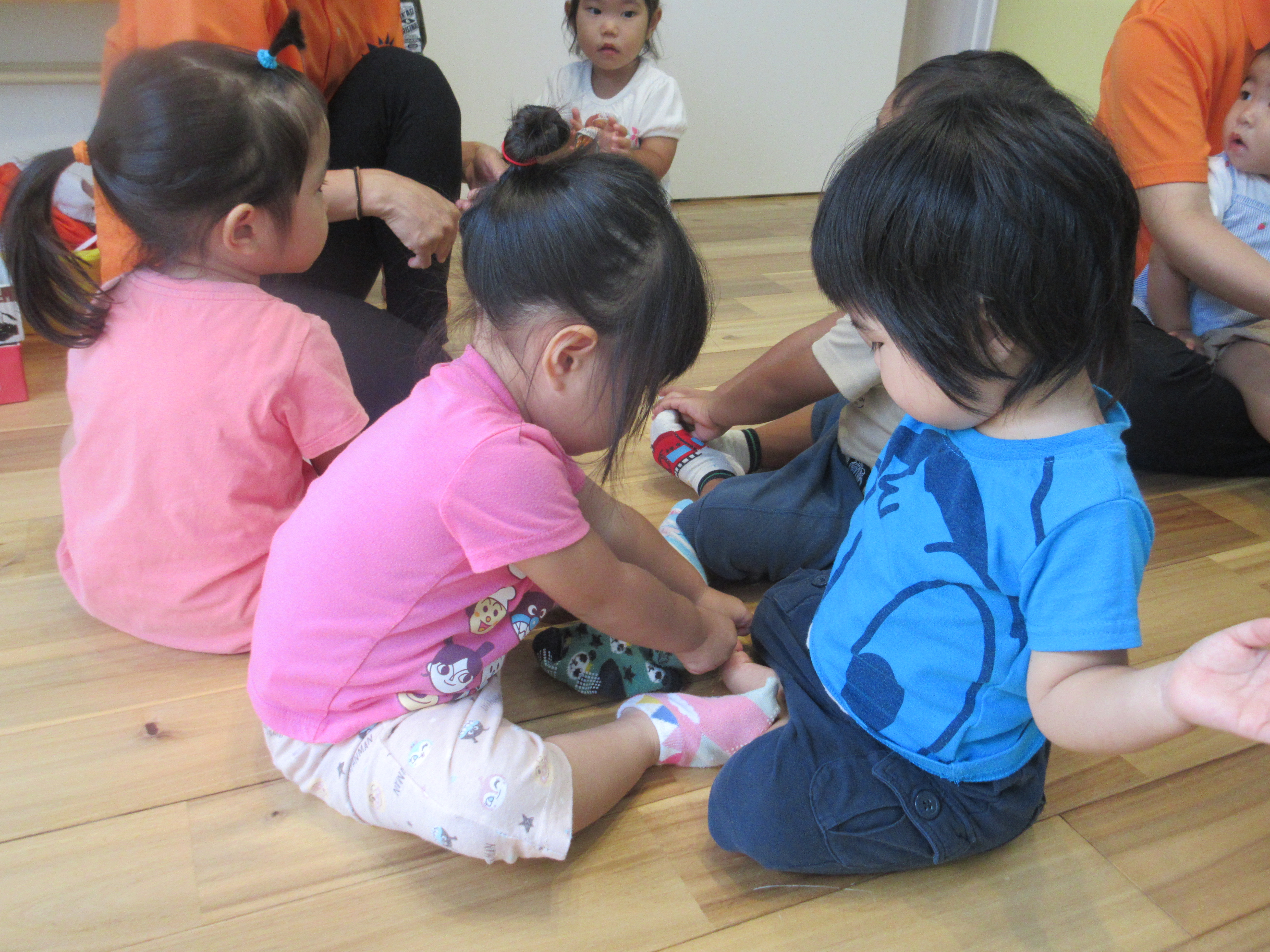 お友達の靴下を履かせてあげようと、お手伝いをする様子も見られましたよ![]()