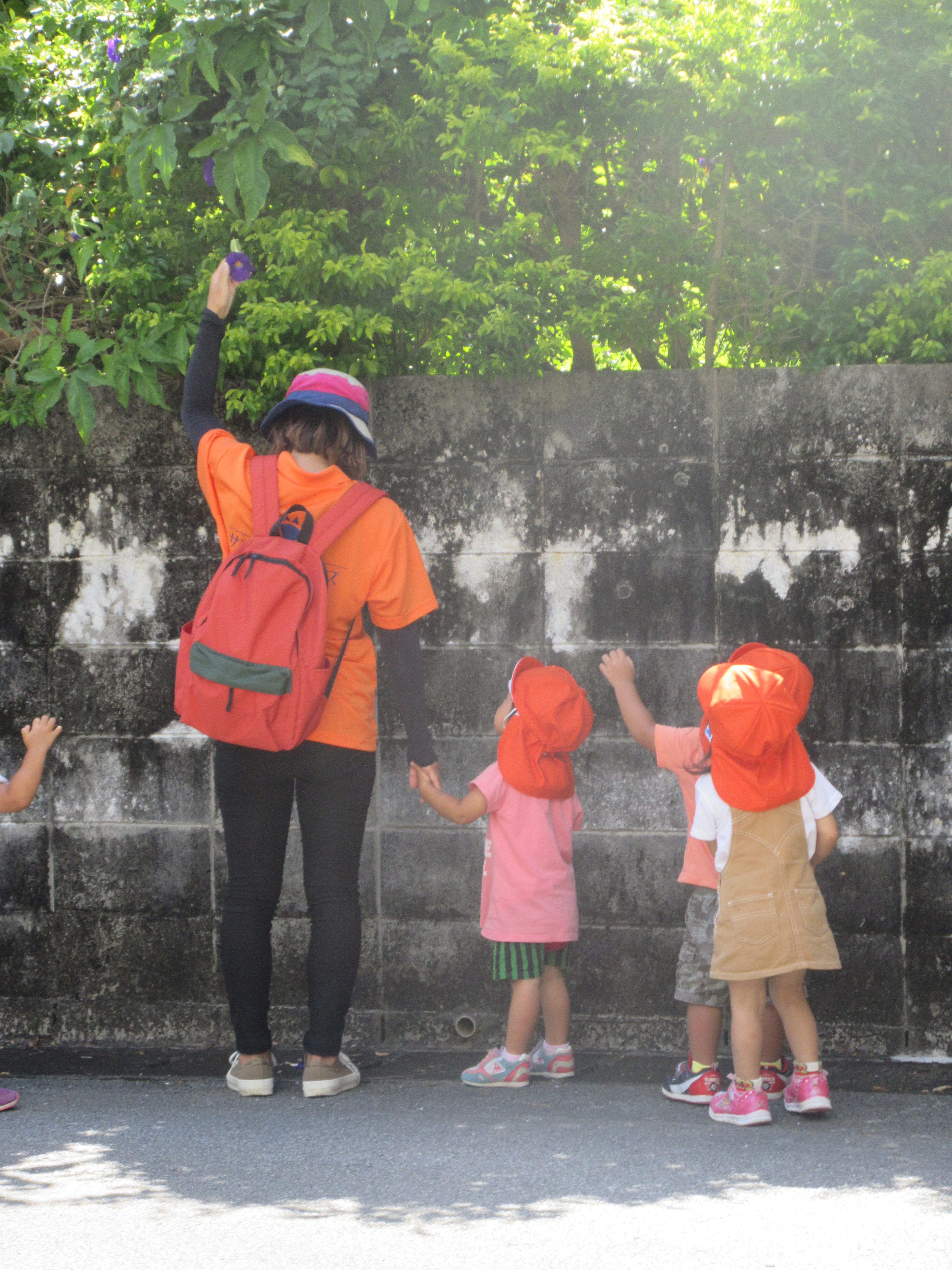 何を見つけたの?と聞いてみると、むらさきのお花を見せてくれましたよ。