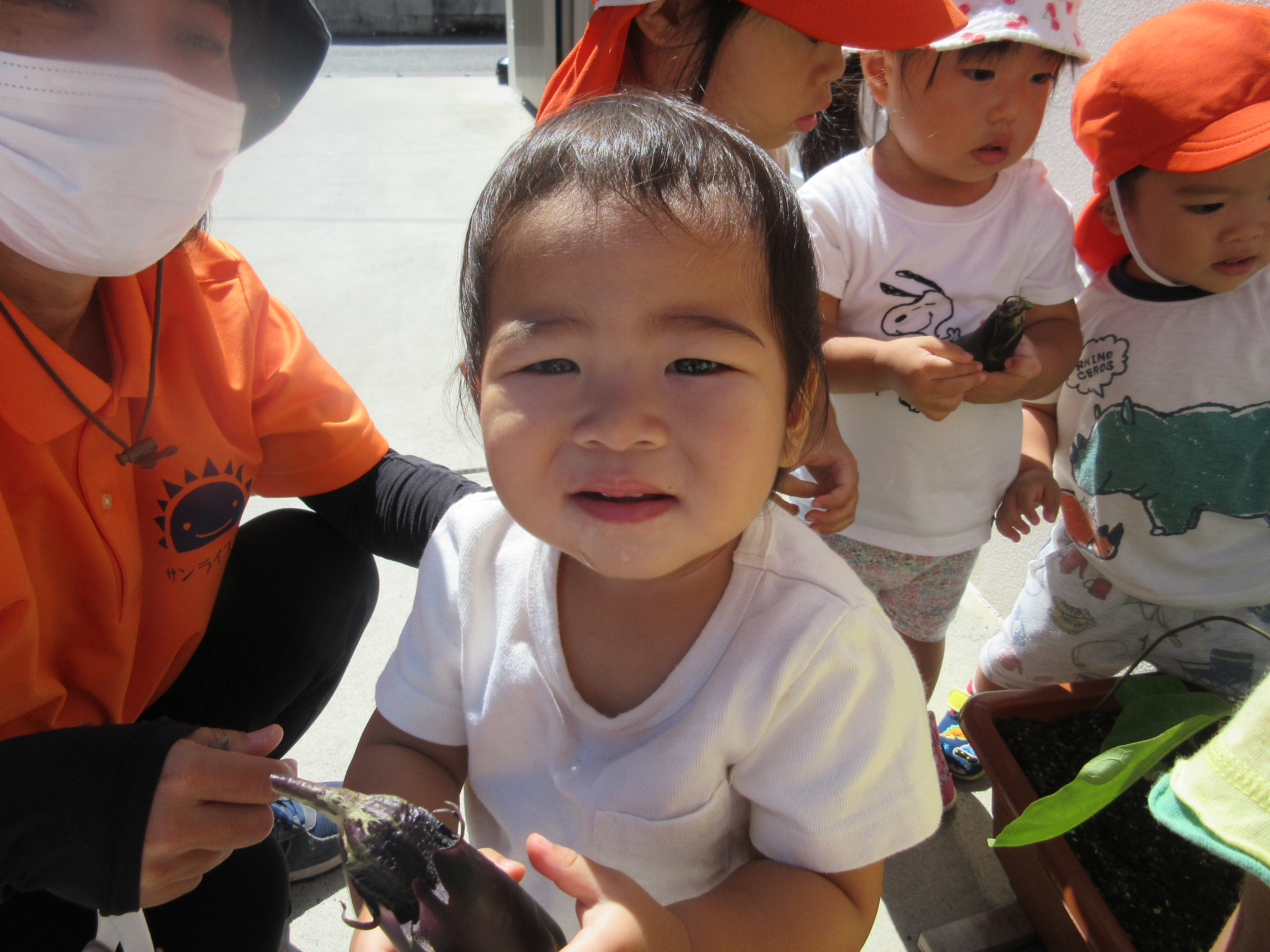 収穫したなすは、当日、おいしい給食になって出てきました![]()