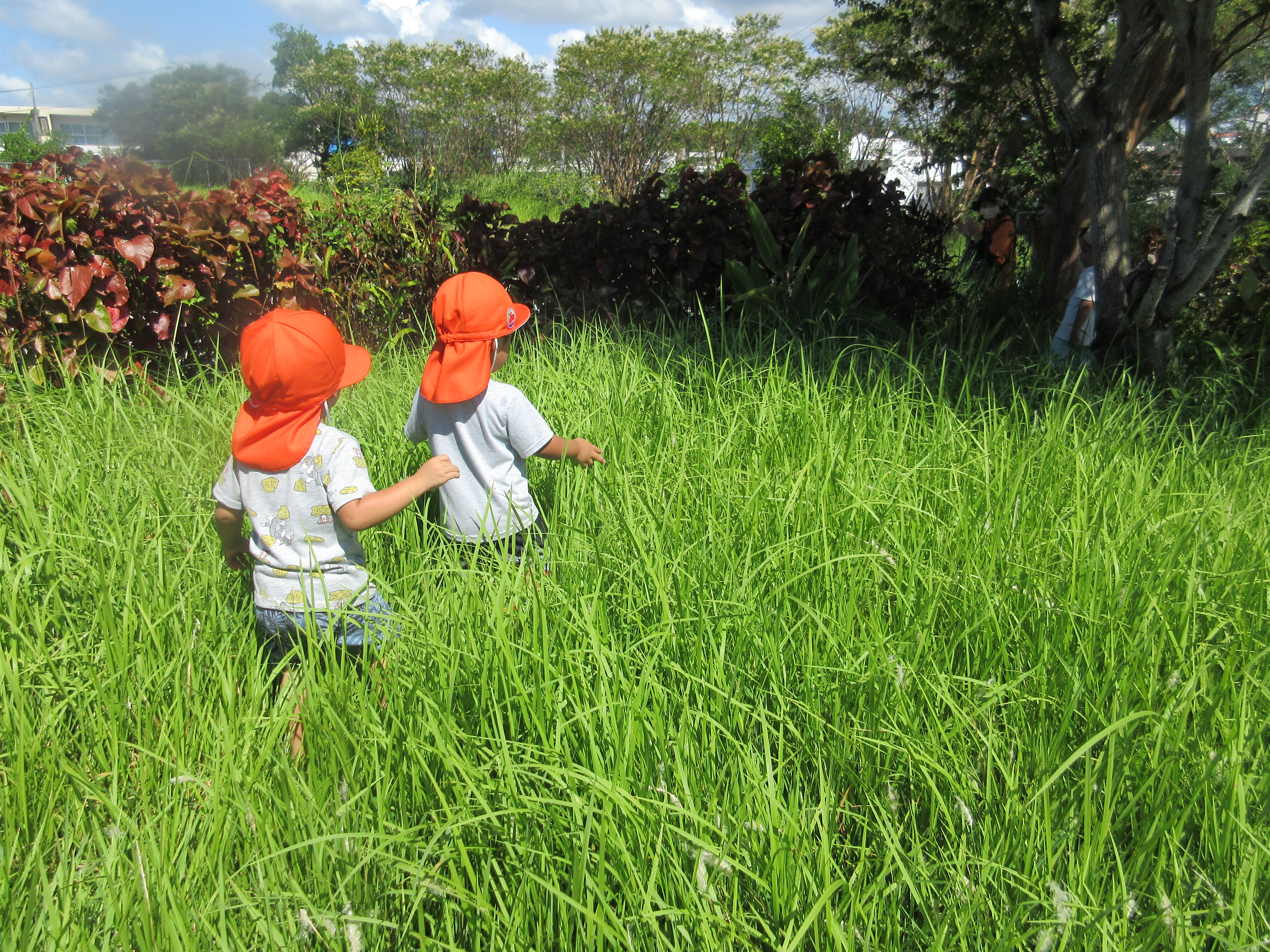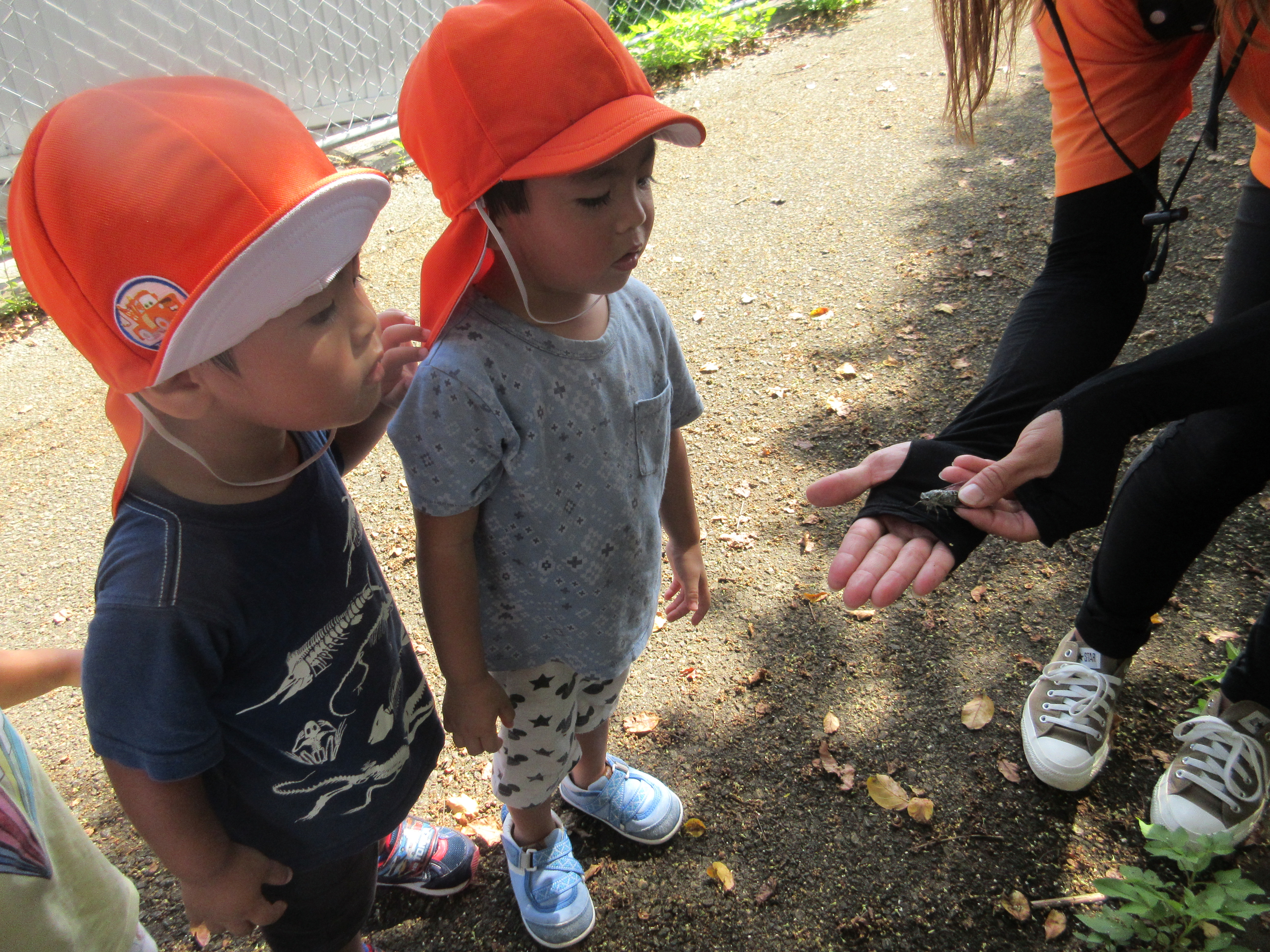 お散歩では、セミの声がどこから聞こえるのか、先生と一緒にみんなで探しましたよ![]()