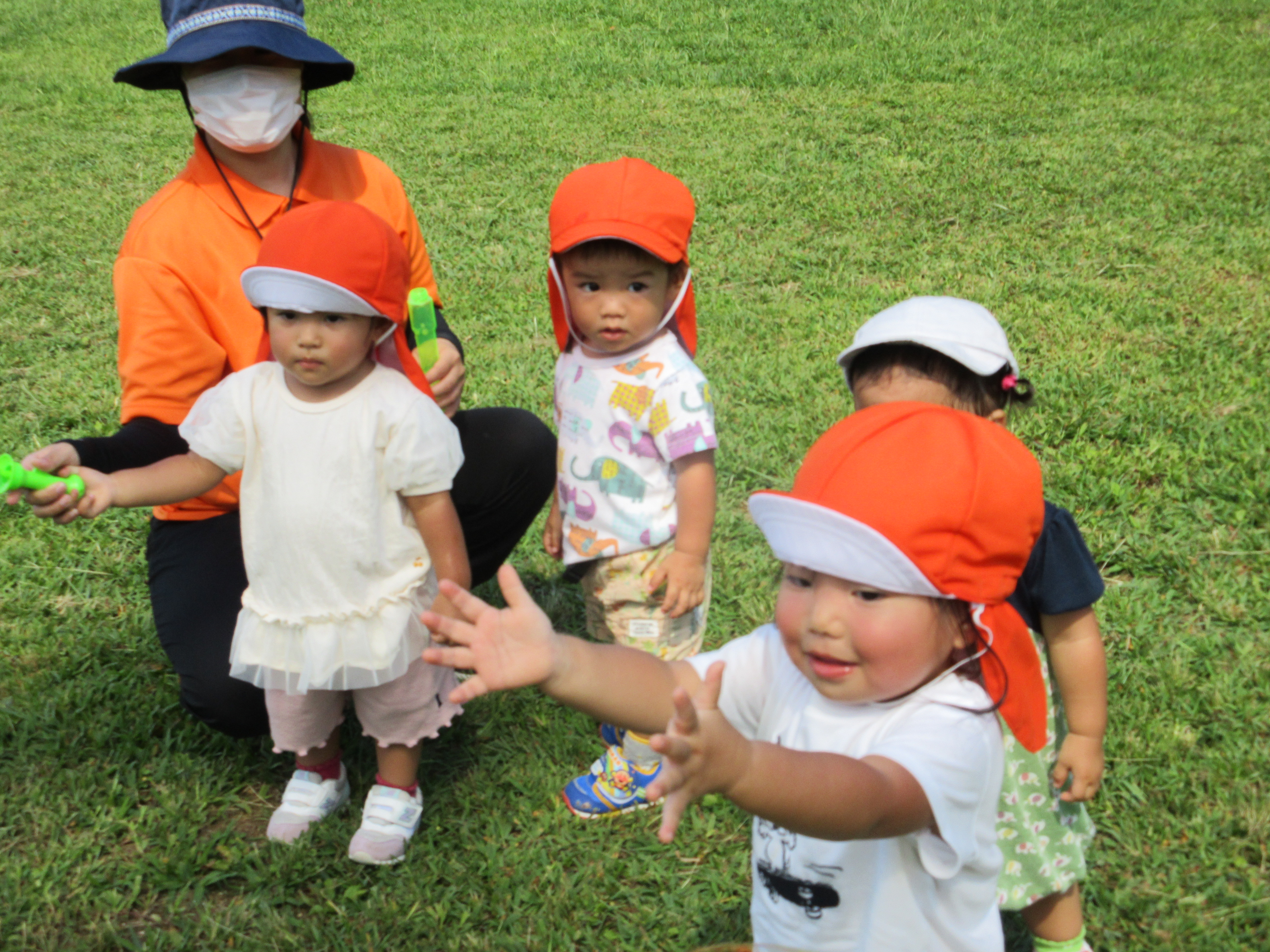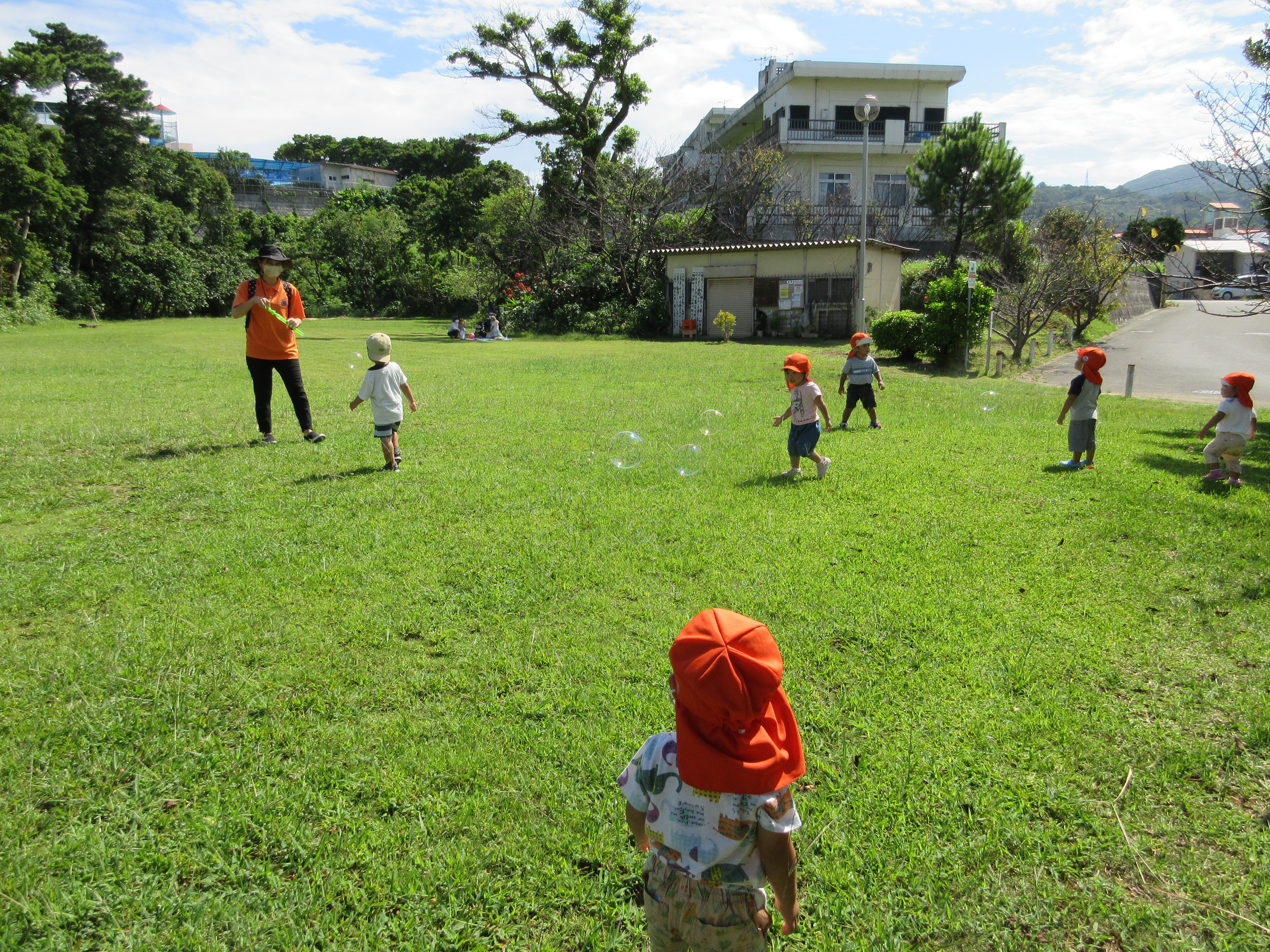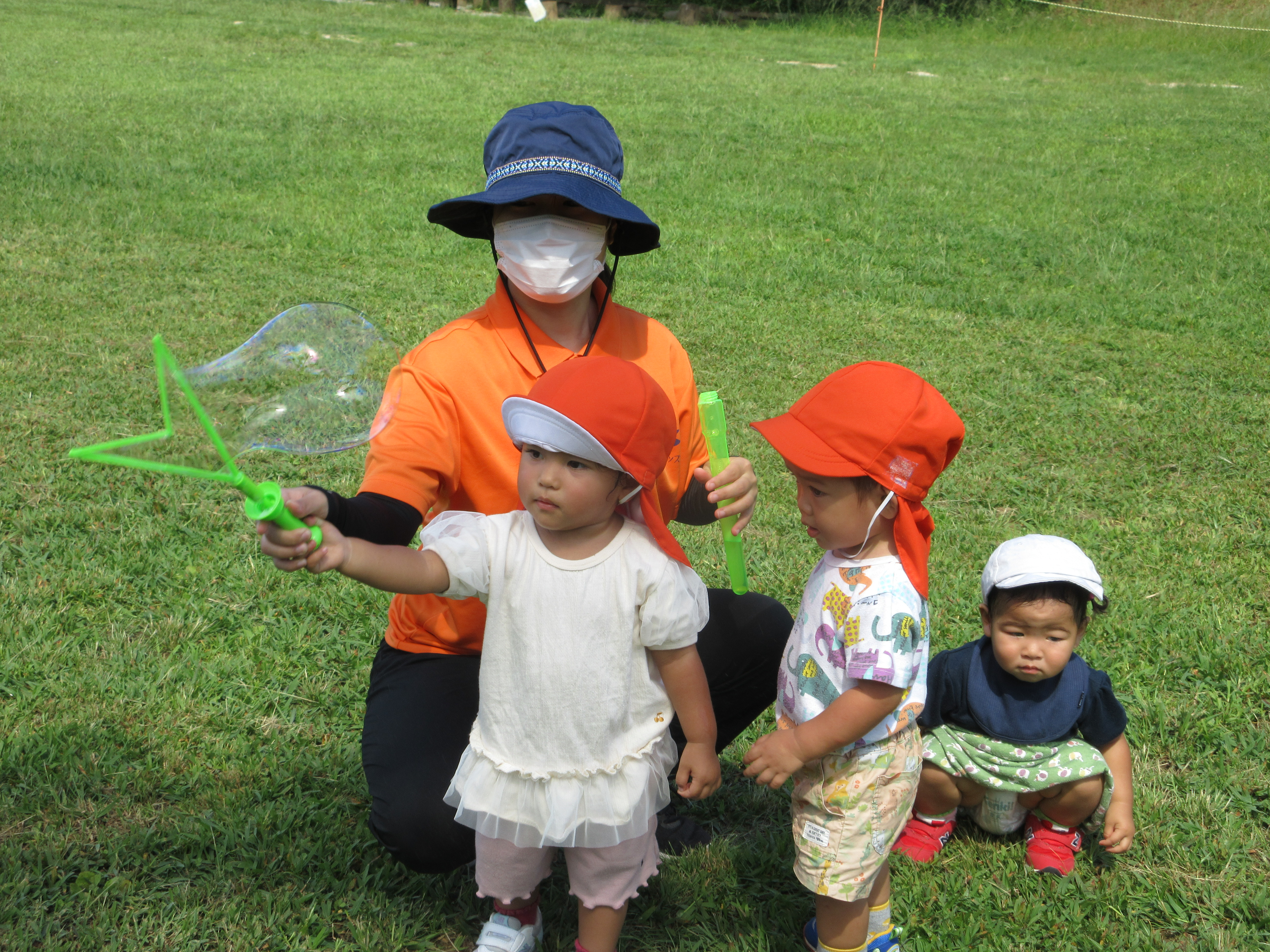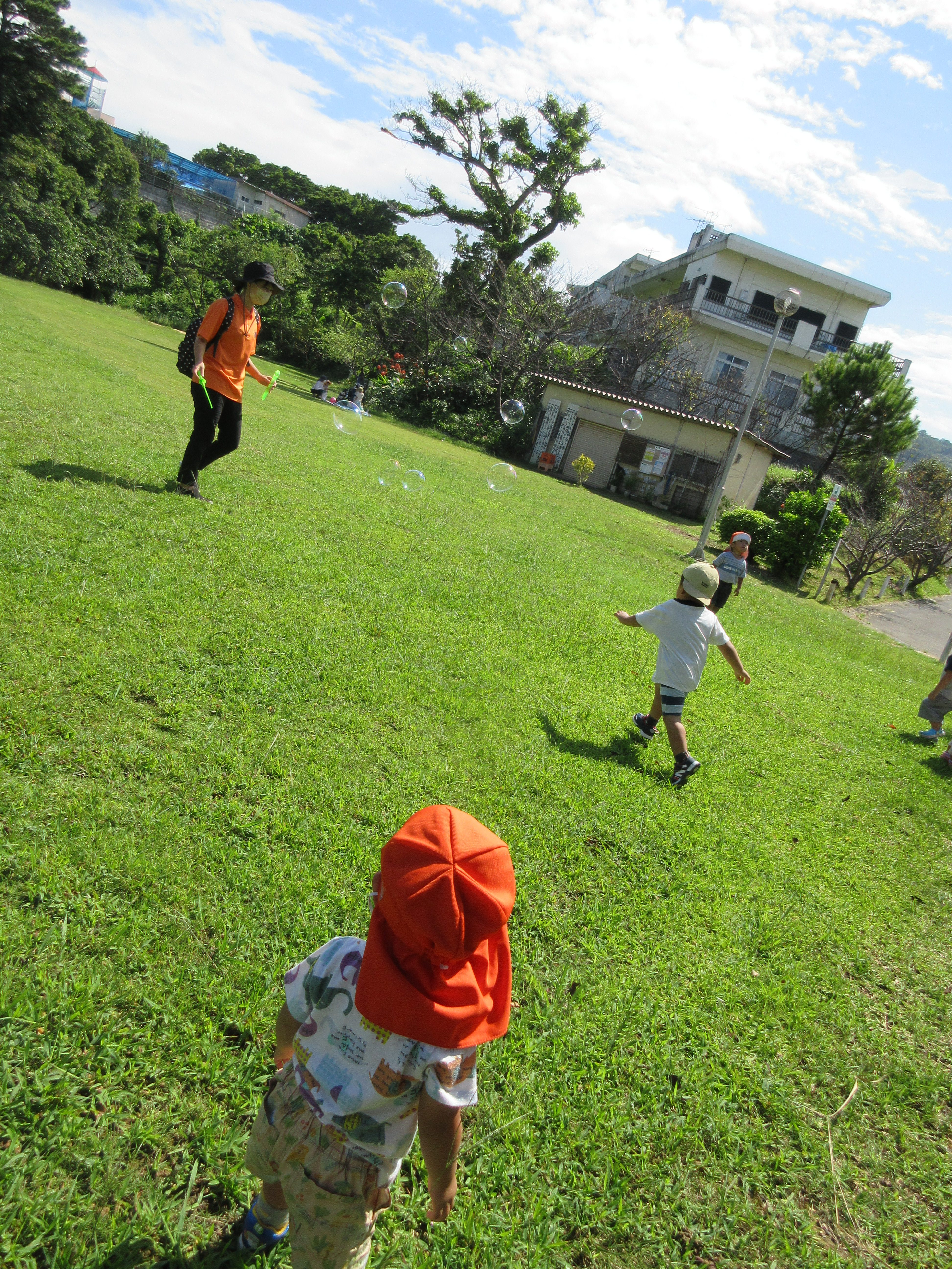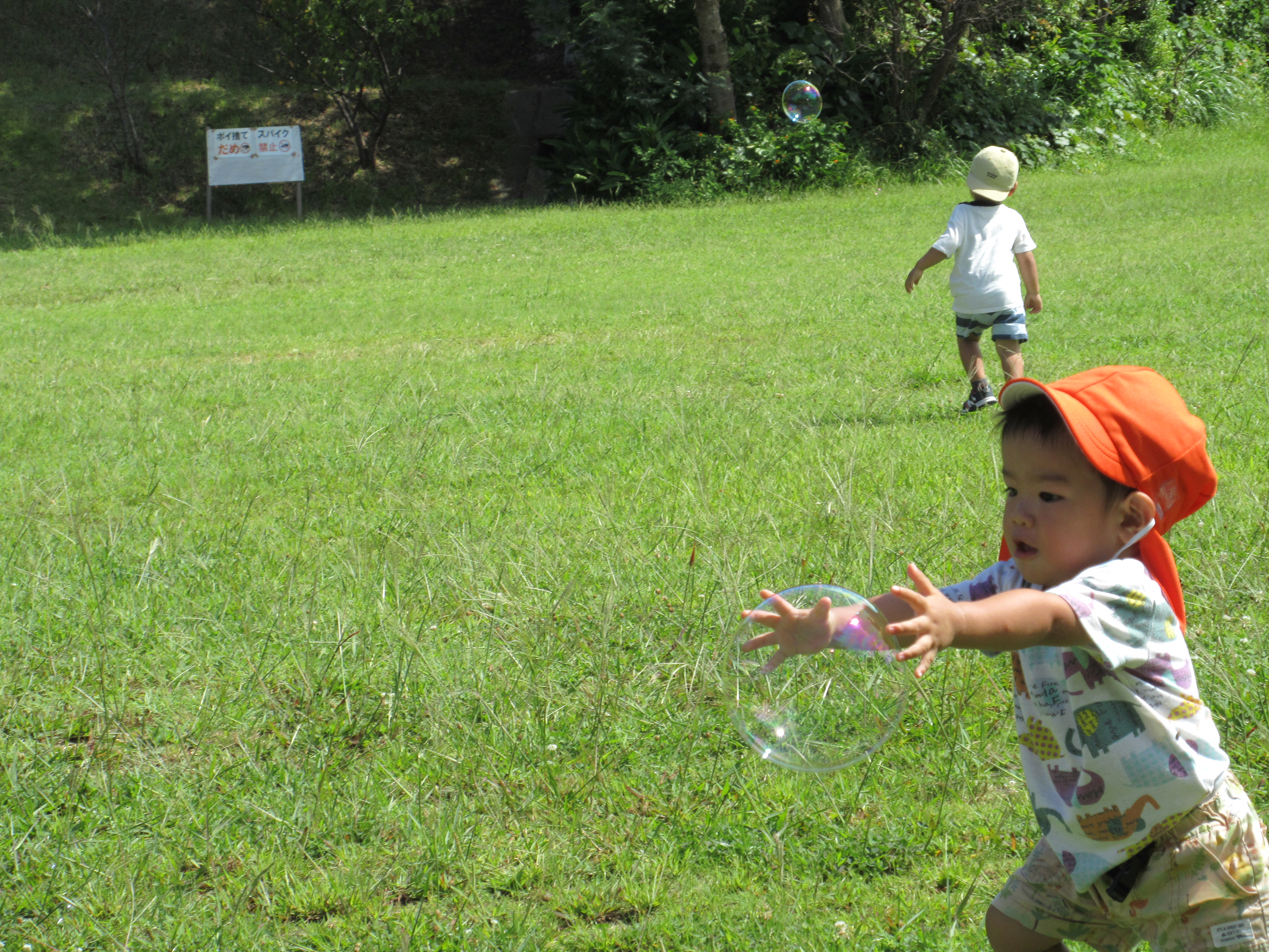 大好きなしゃぼん玉を追いかけて、汗をかきかき、走り回りました![]()
