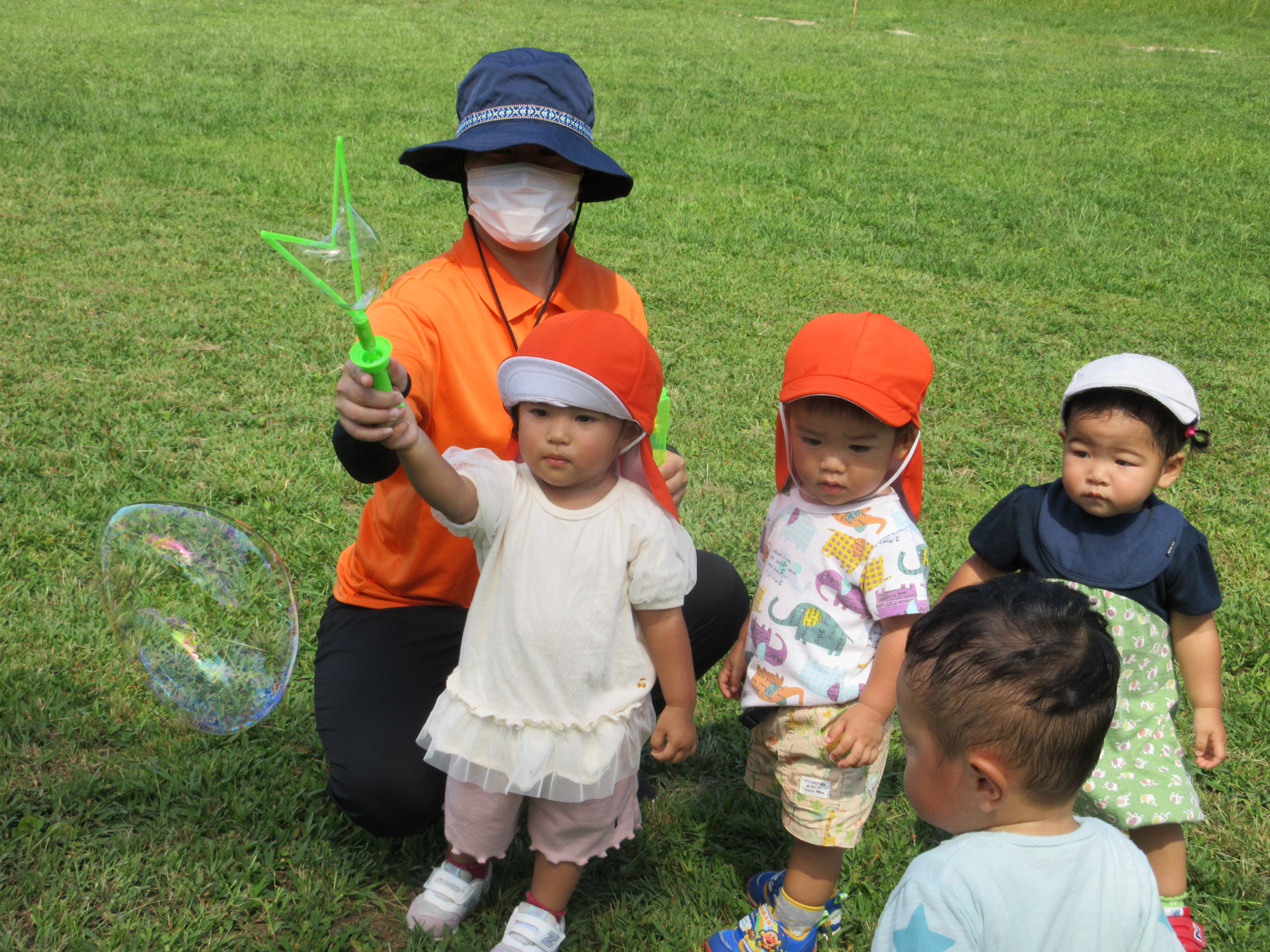 散策の後は、先生がしゃぼん玉を作ってくれましたよ![]()
