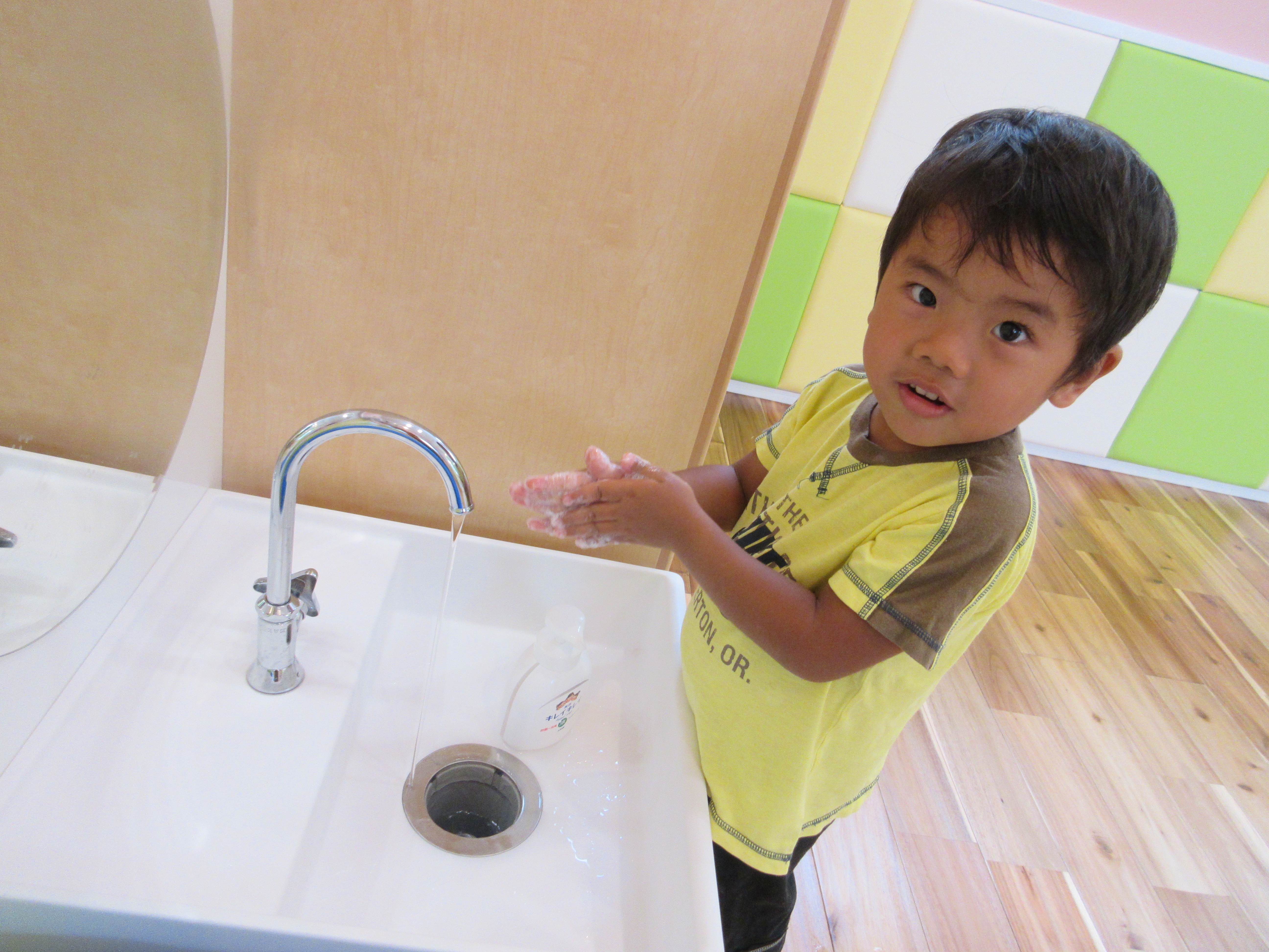 外から帰ると、ゴシゴシ、しっかり手洗いです![]()