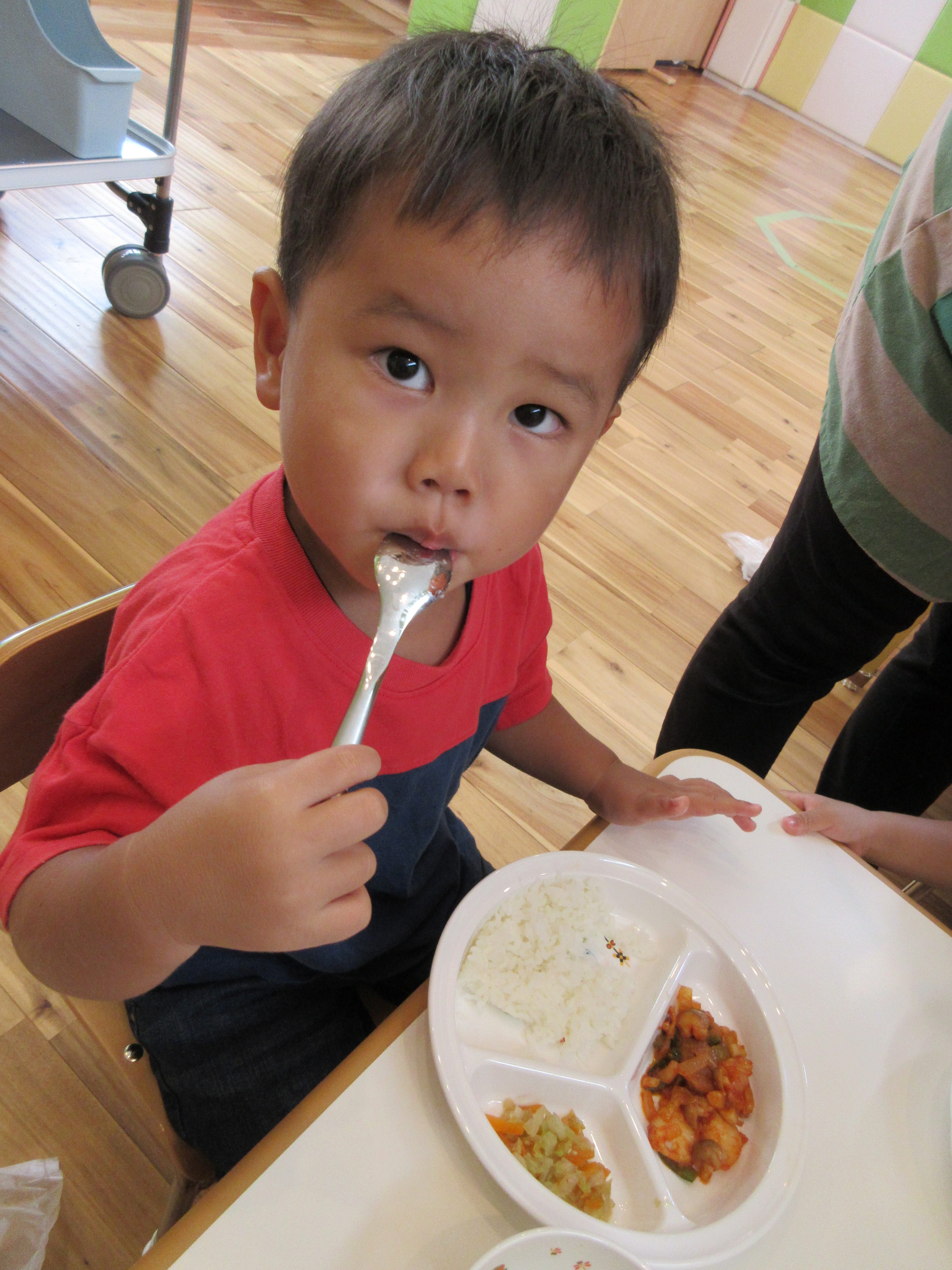 おトイレも手洗いも済むと、お待ちかねの給食です♪