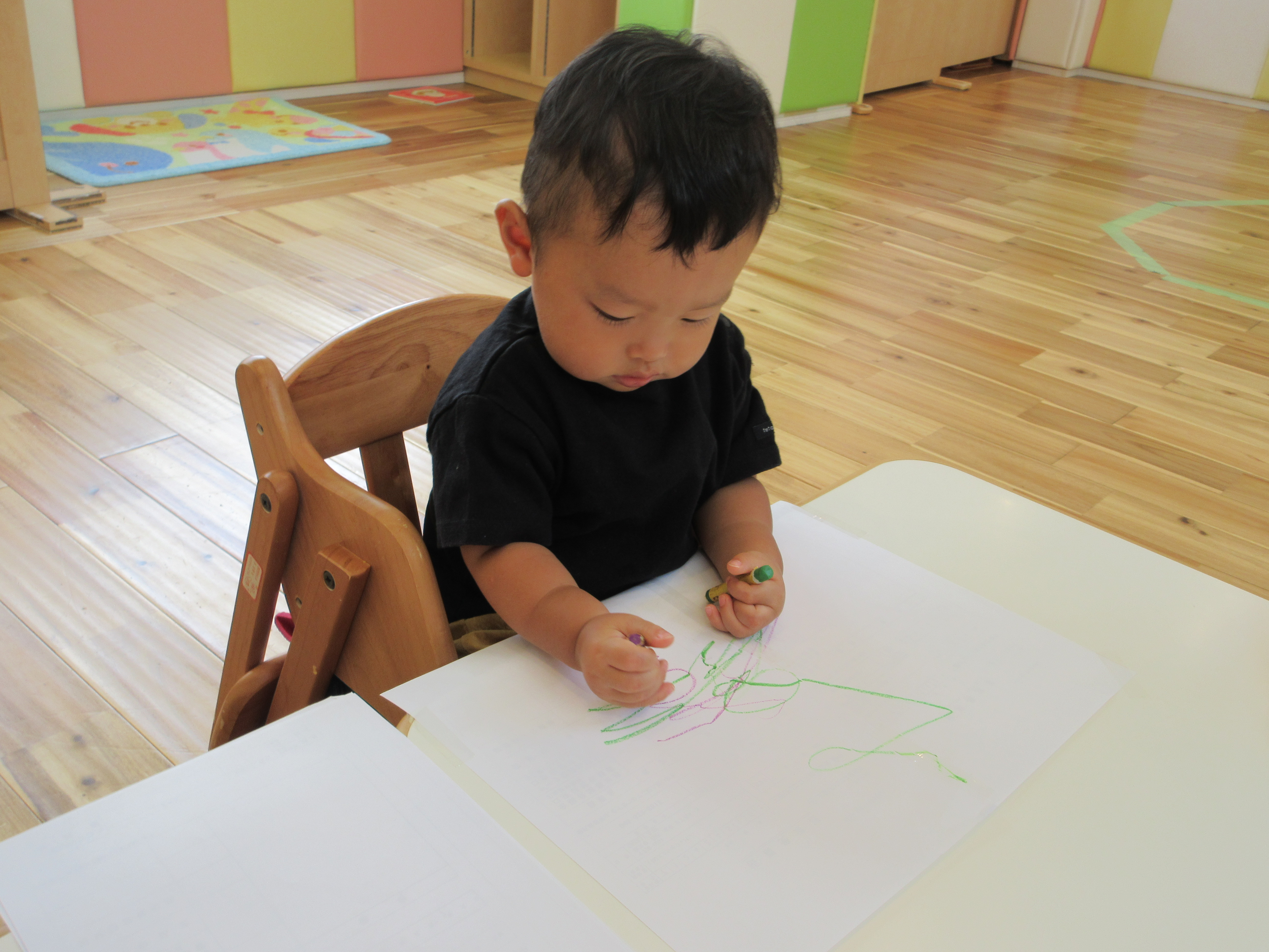 お絵描きも、子どもたちが好きな室内遊びの一つですよ。