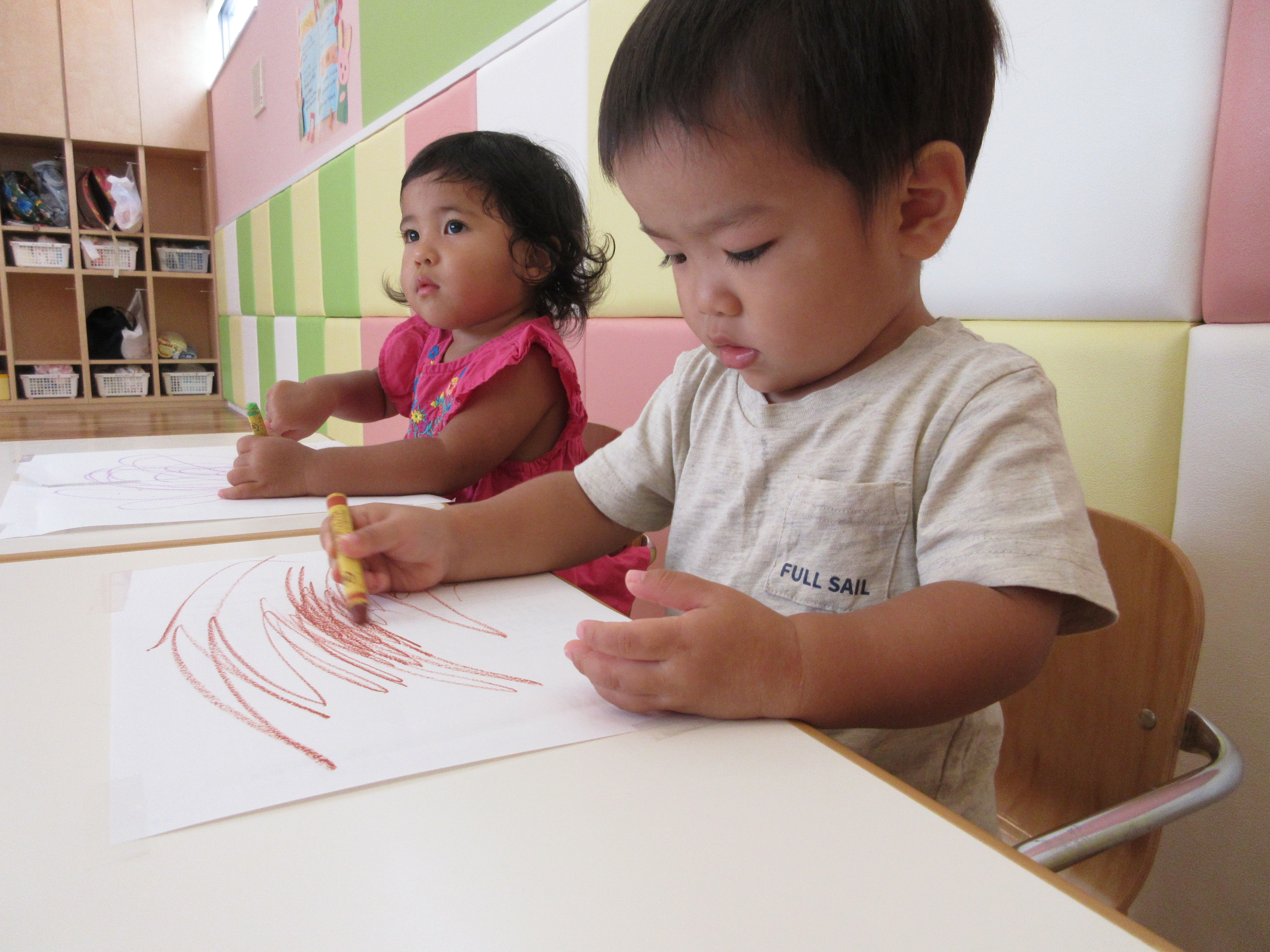 0歳児さんも、とっても上手にクレヨンを使えるようになりましたよ![]()