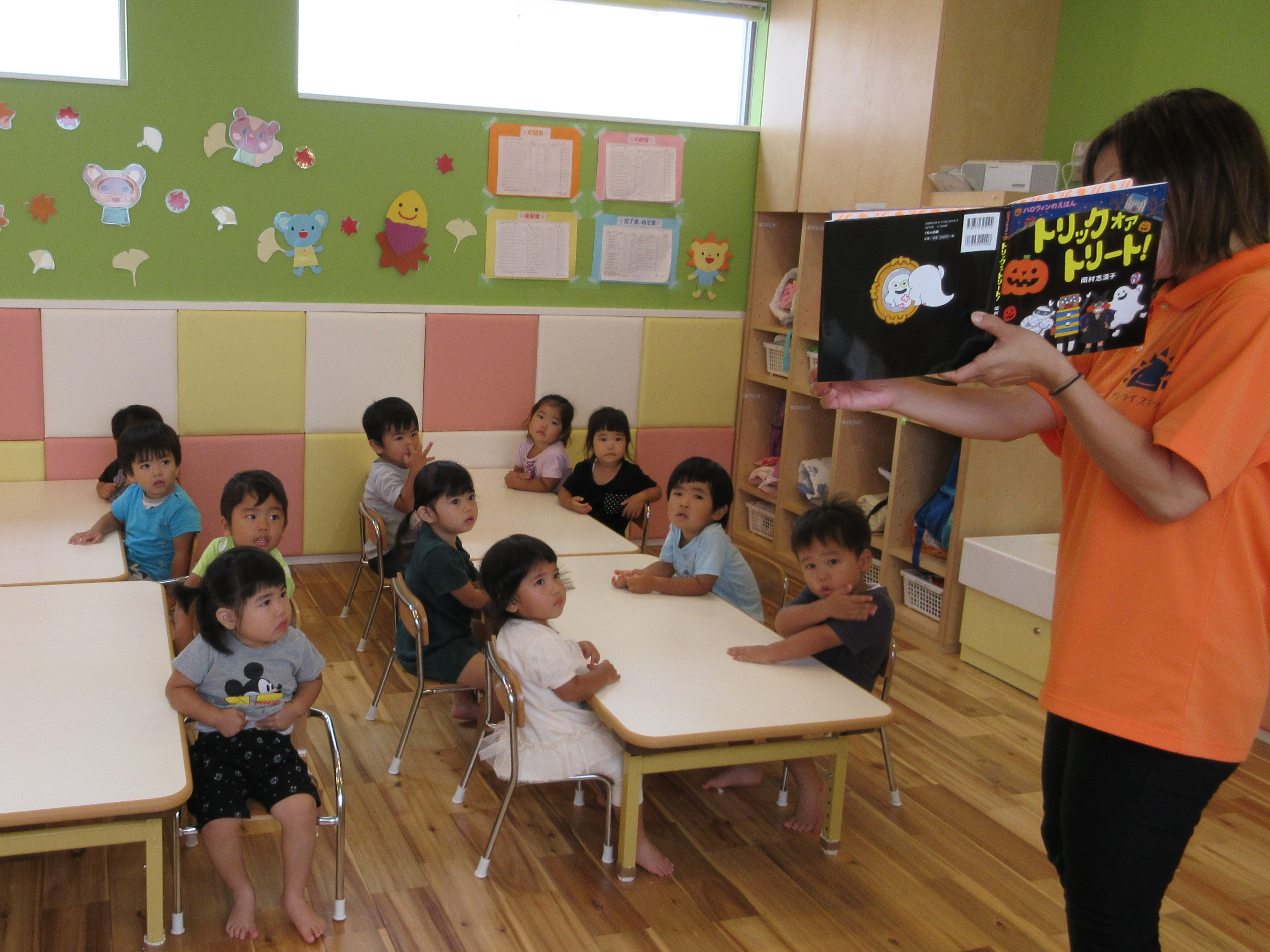 みんなで「トリック オア トリート!」と言うと、おかしをたくさんもらいました♪