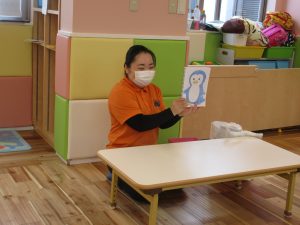 「コンコンコン」を子どもたちも保育士の声に合わせて真似をして楽しんでいましたよ![]()
