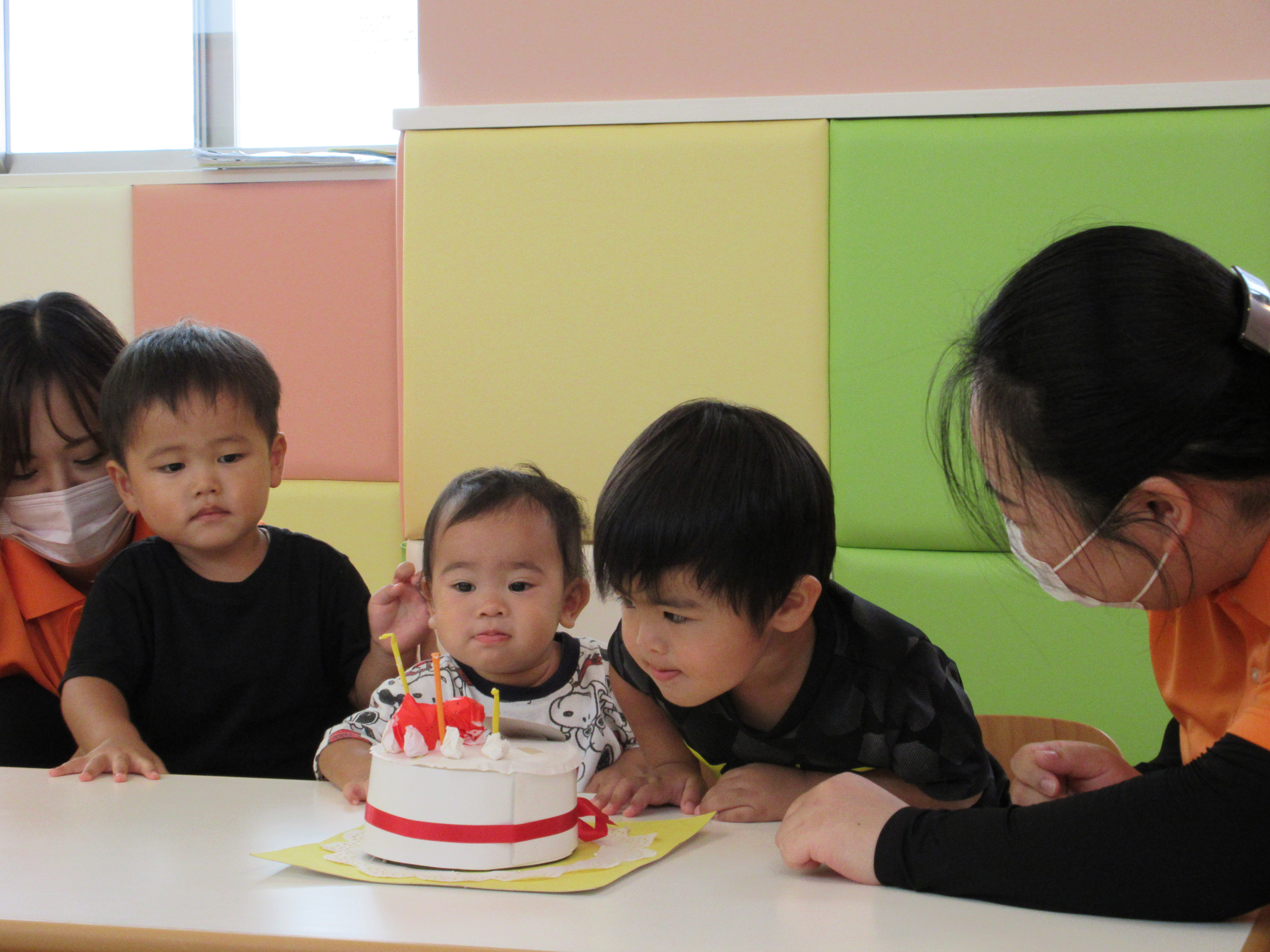 名護園では、3人のおともだちのお祝いをしましたよ![]()