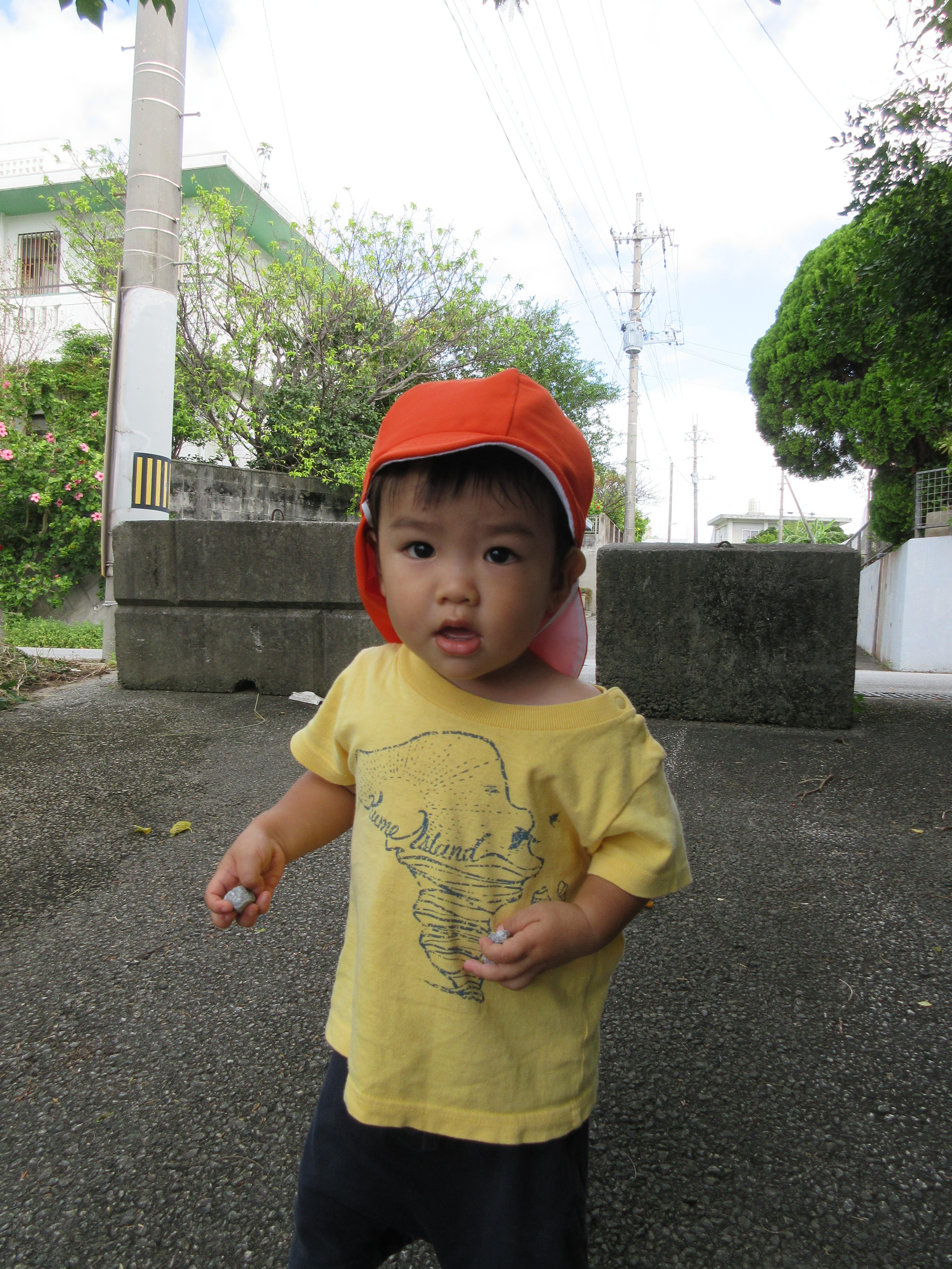 お散歩の途中では、小石を見つけました。