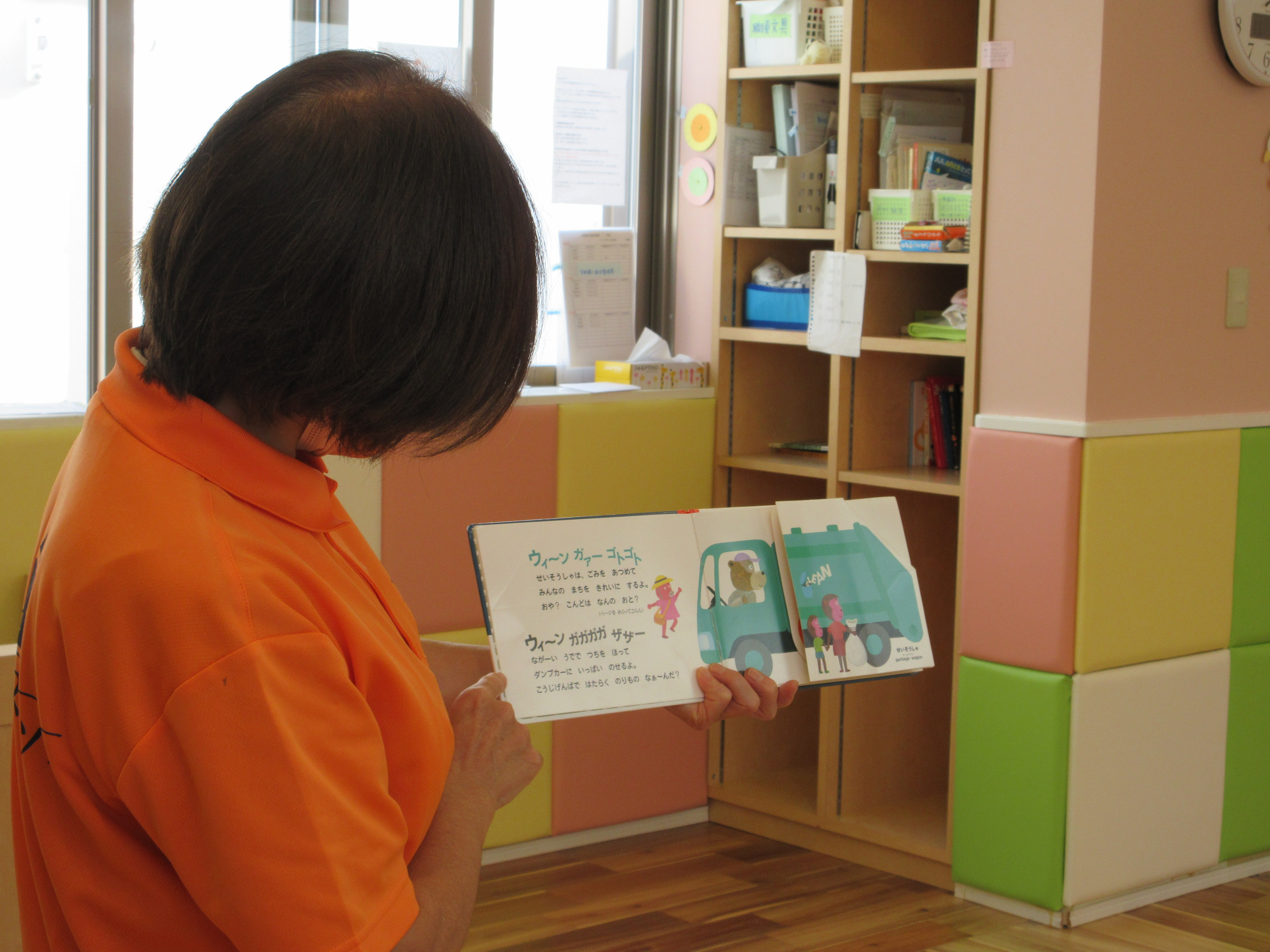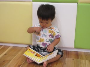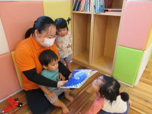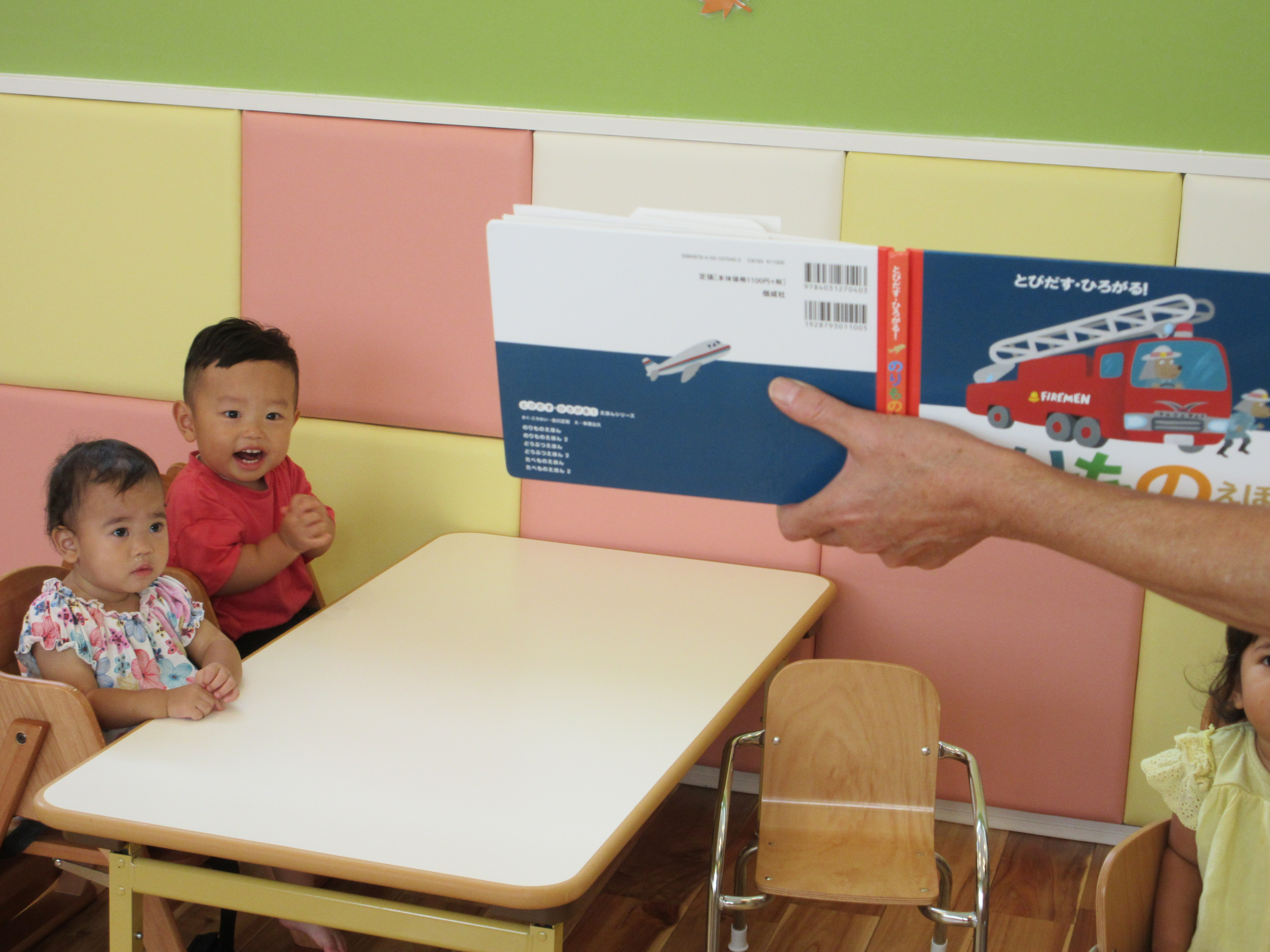 子どもたちは何度も「よんで‼」と絵本を持ってきます。