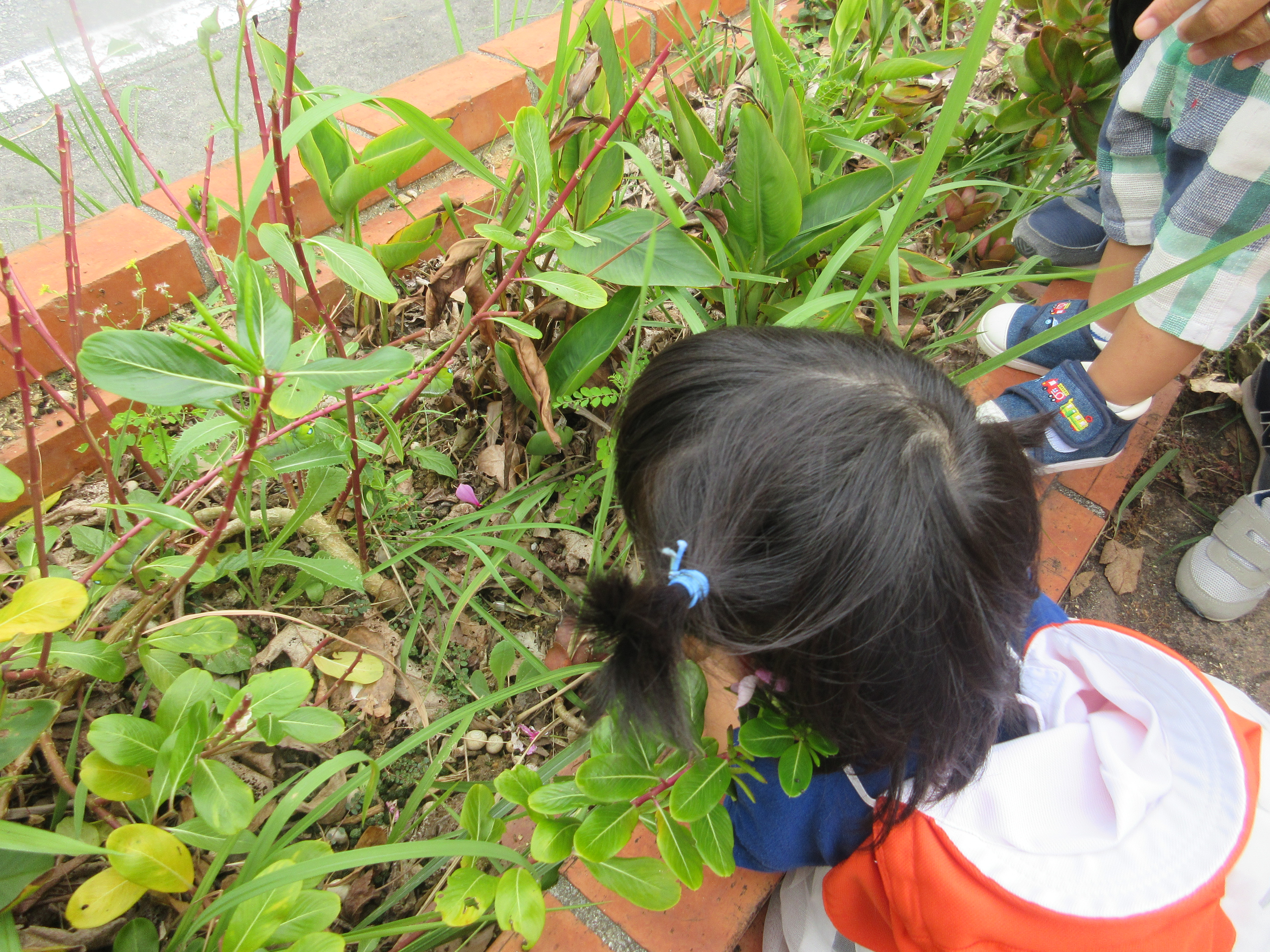 花壇の日々草の葉っぱがありません!その下には糞らしきものが!