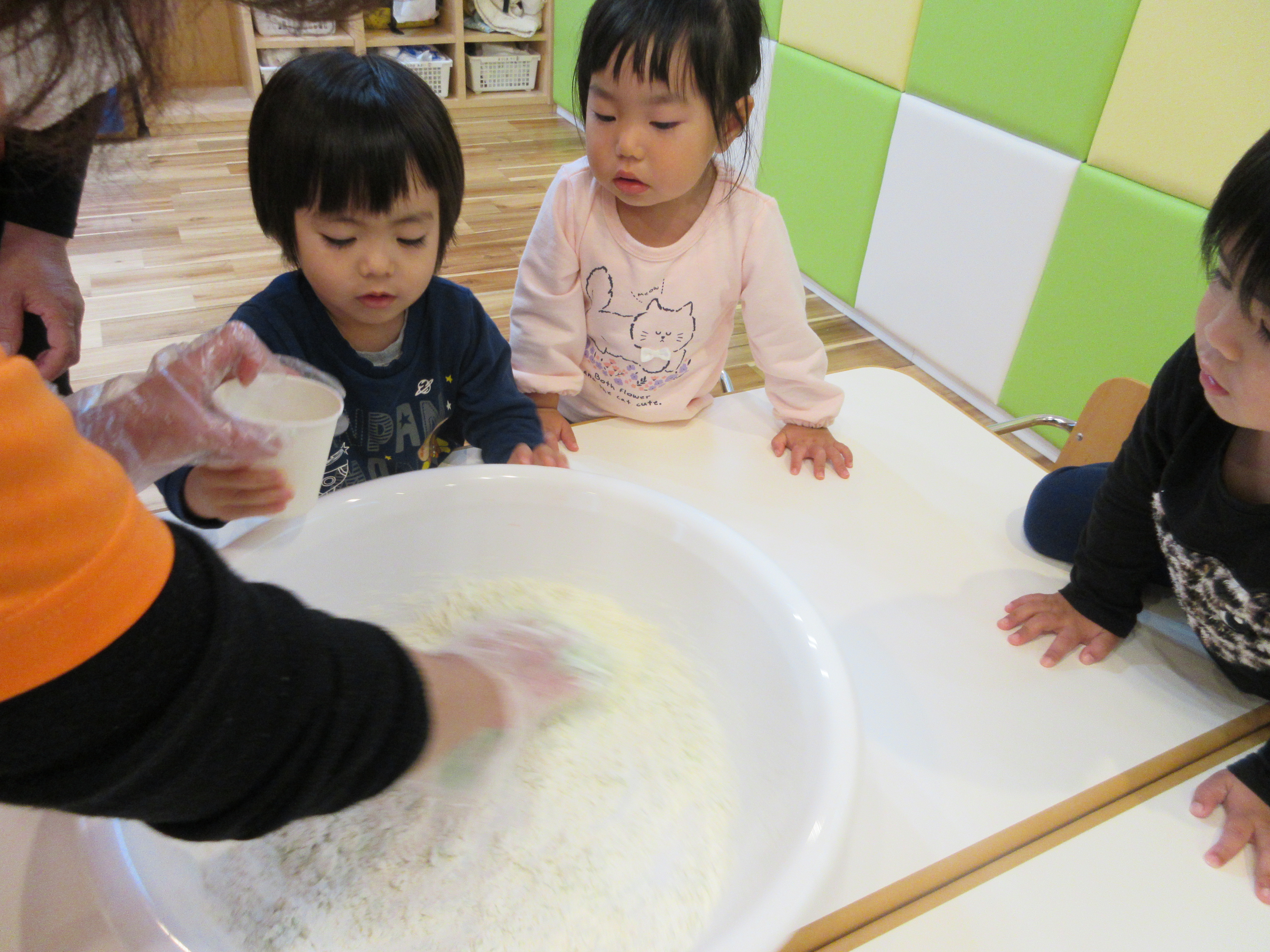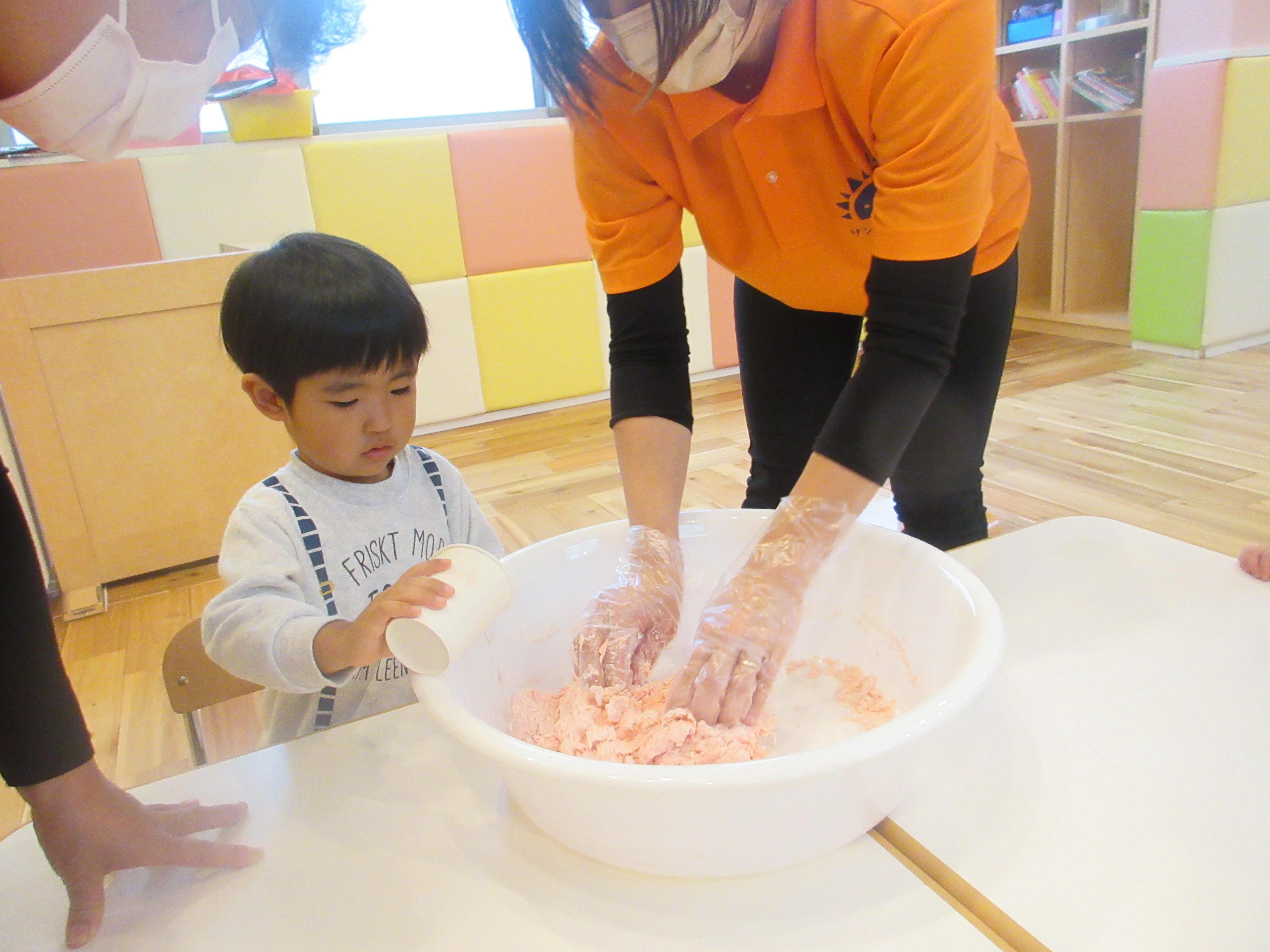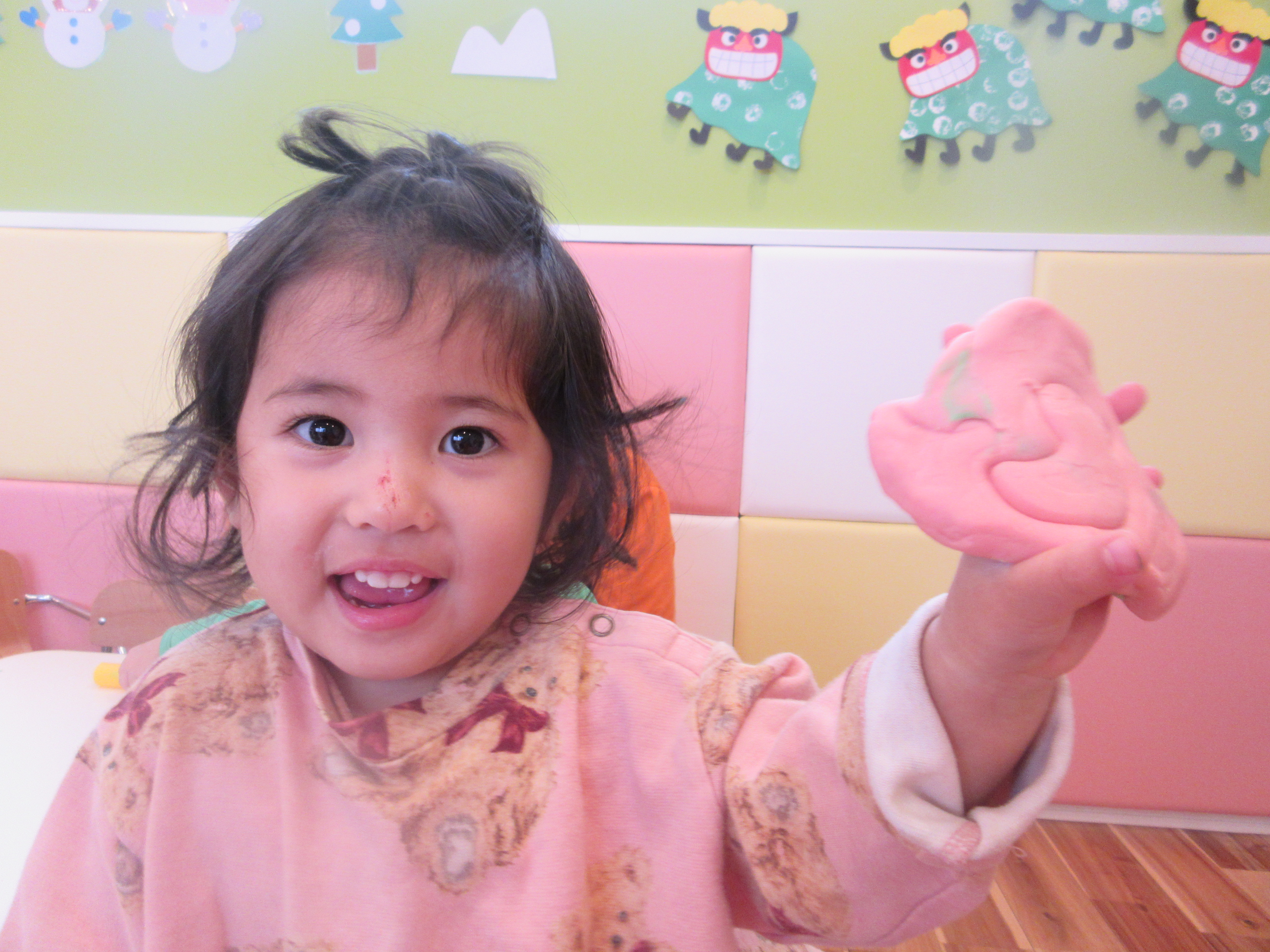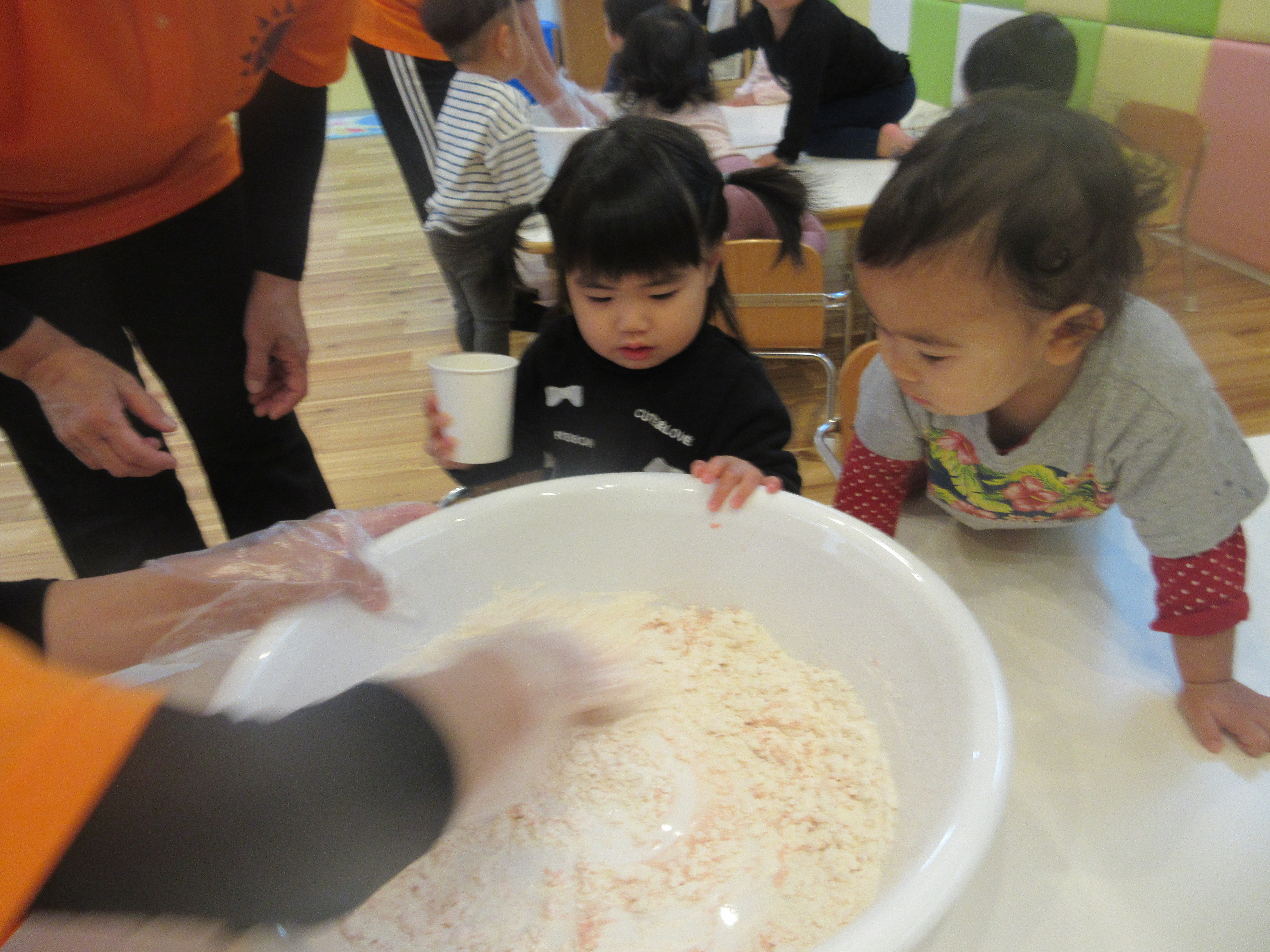 雨の日、小麦粉粘土遊びをしましたよ。