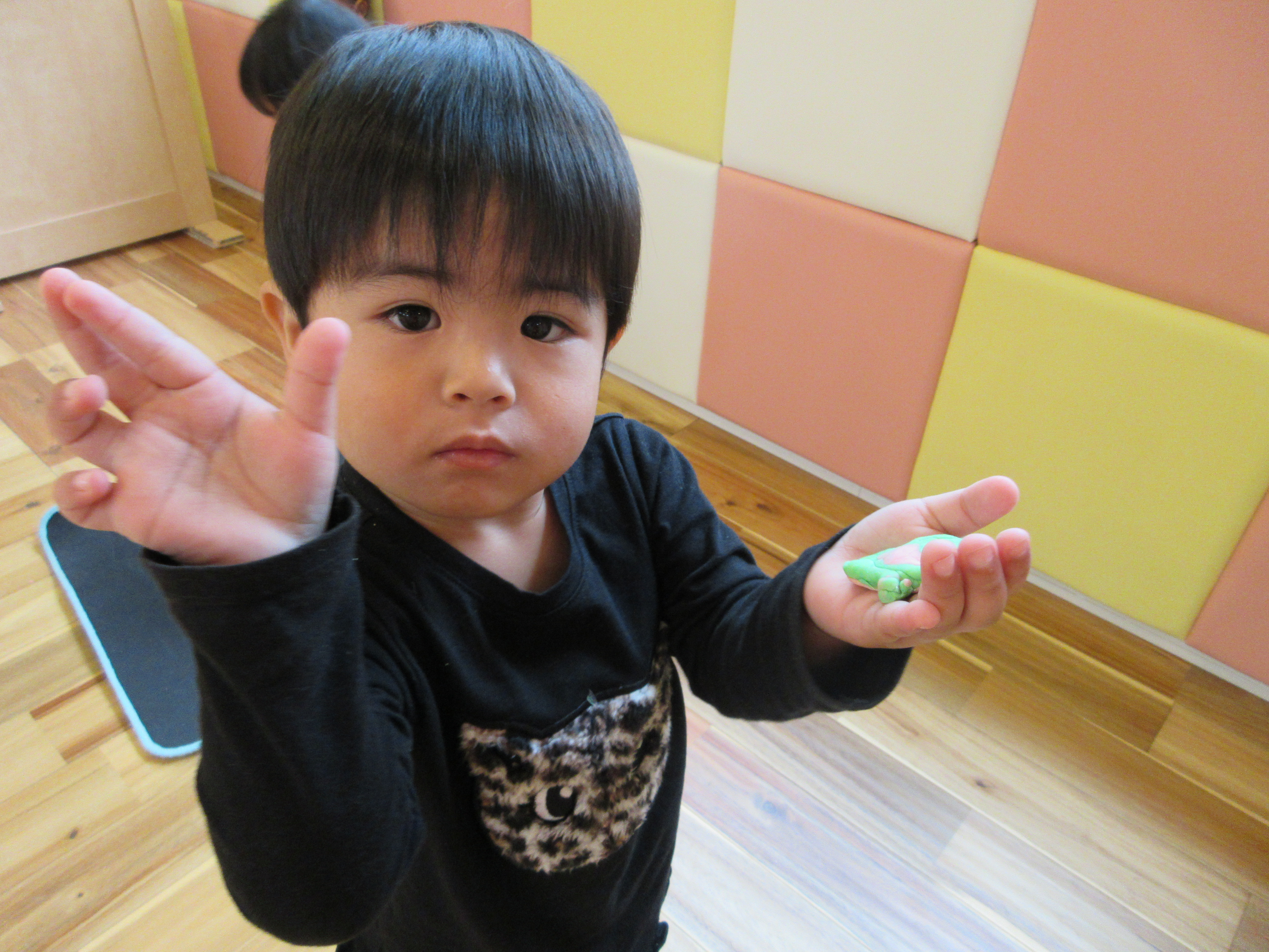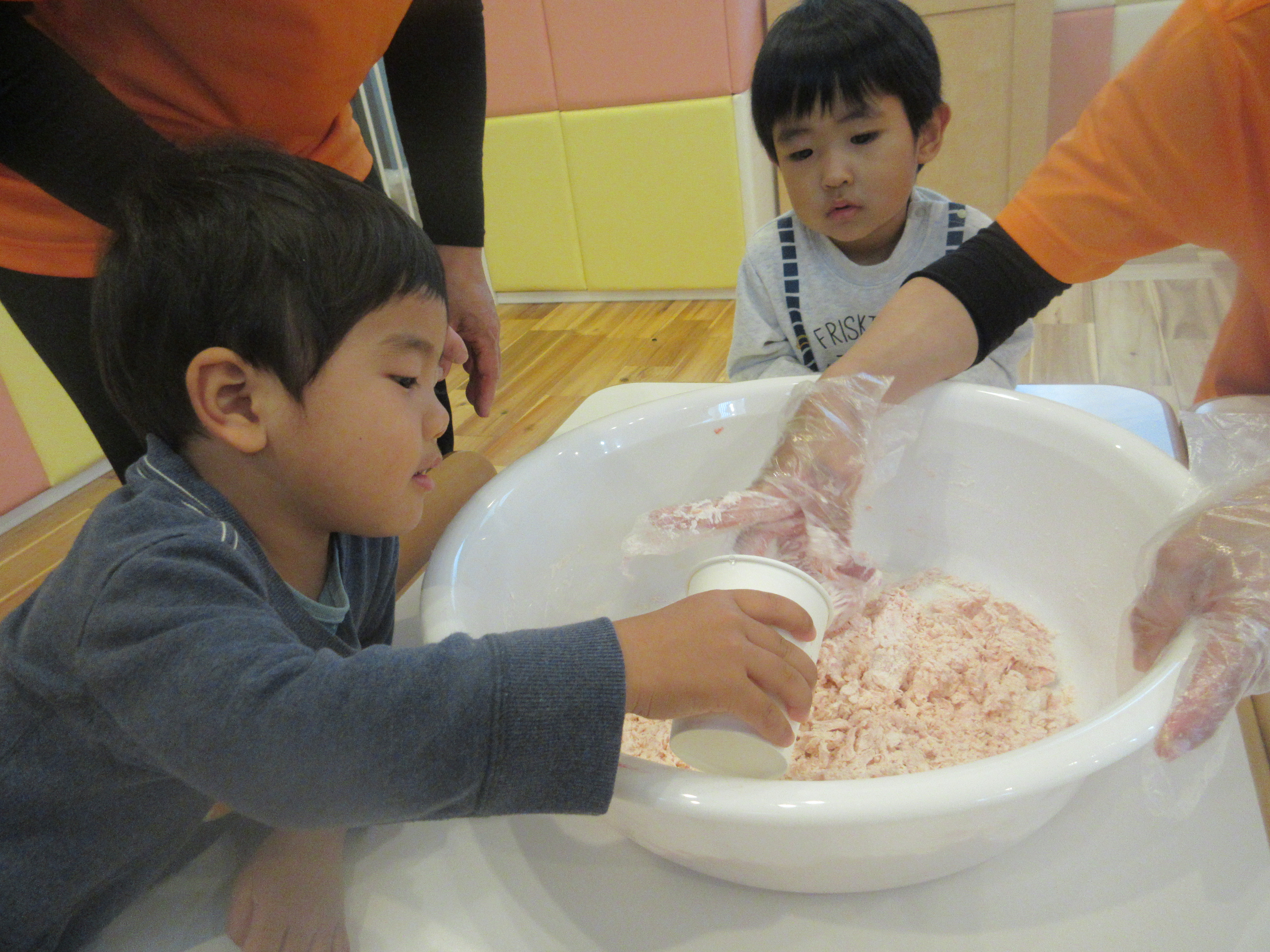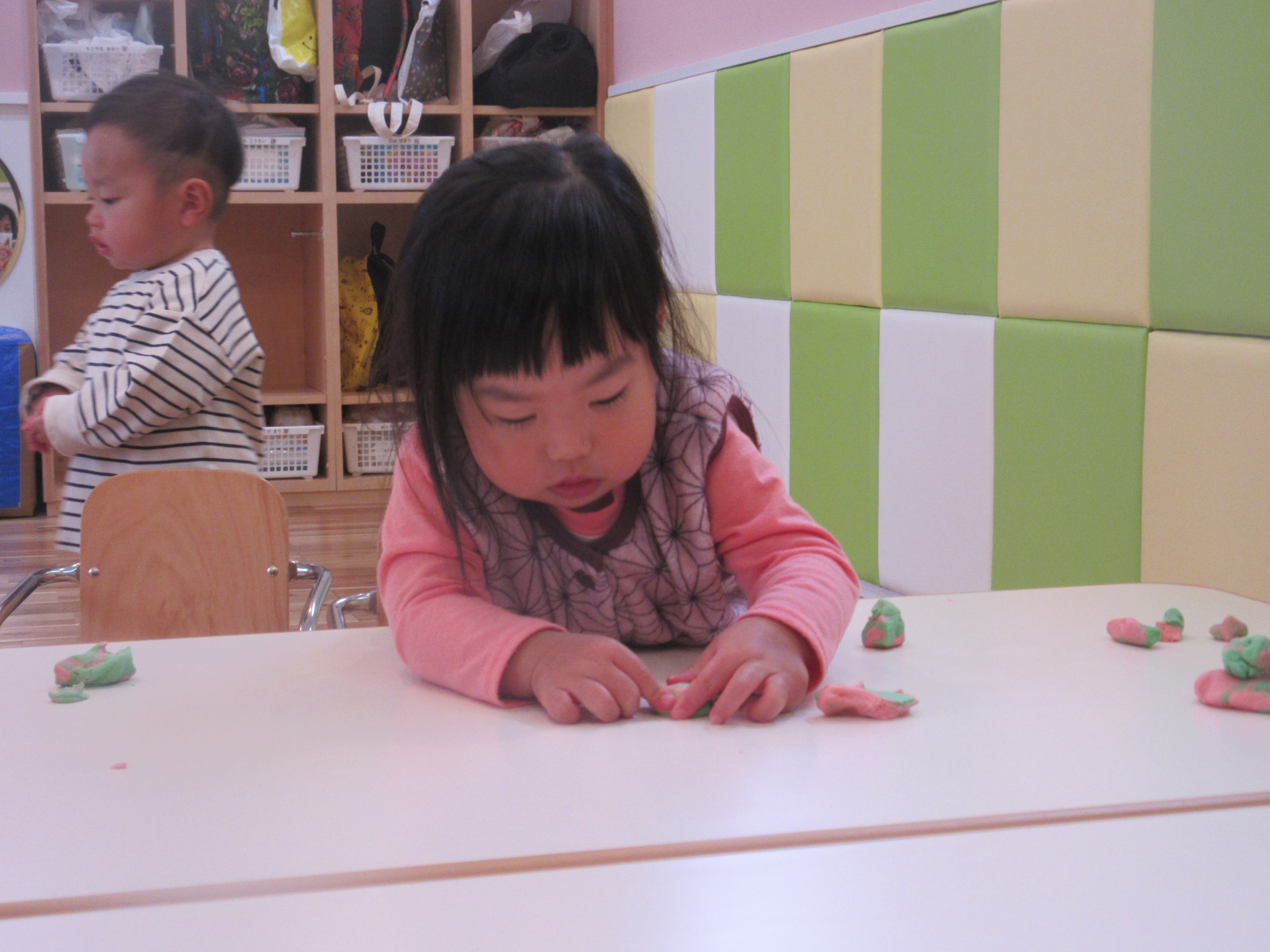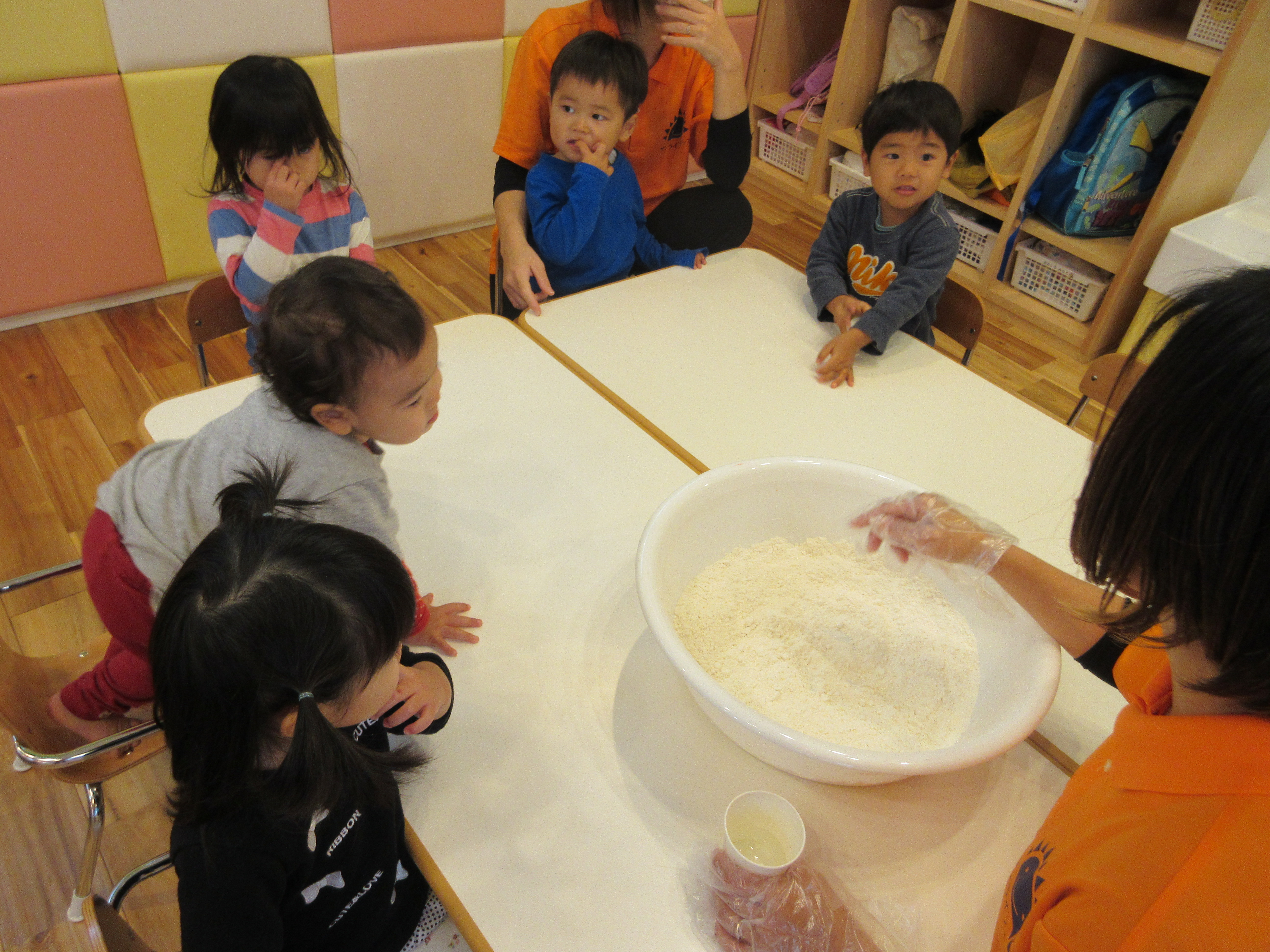 雨の日、小麦粉粘土遊びをしましたよ。