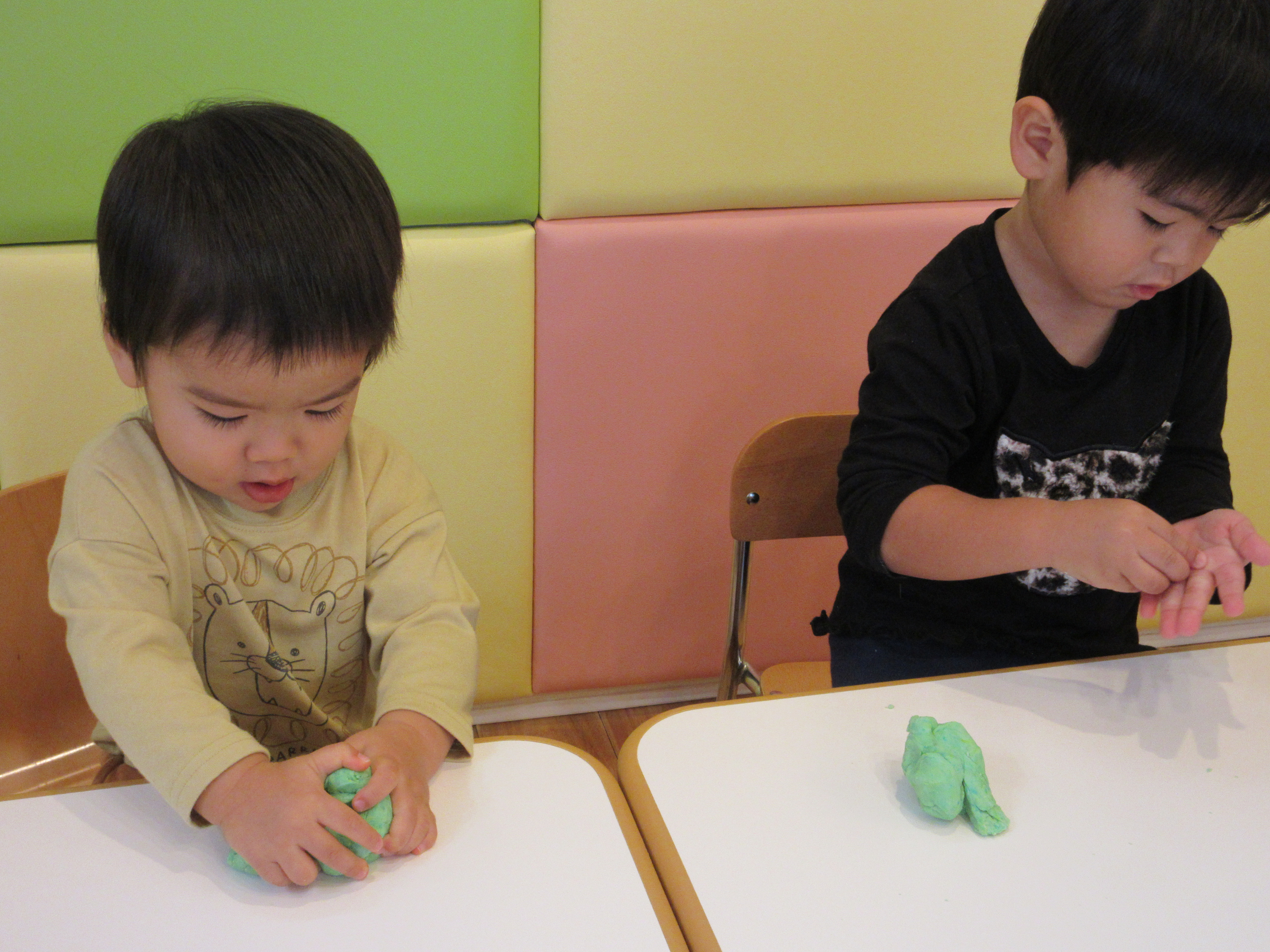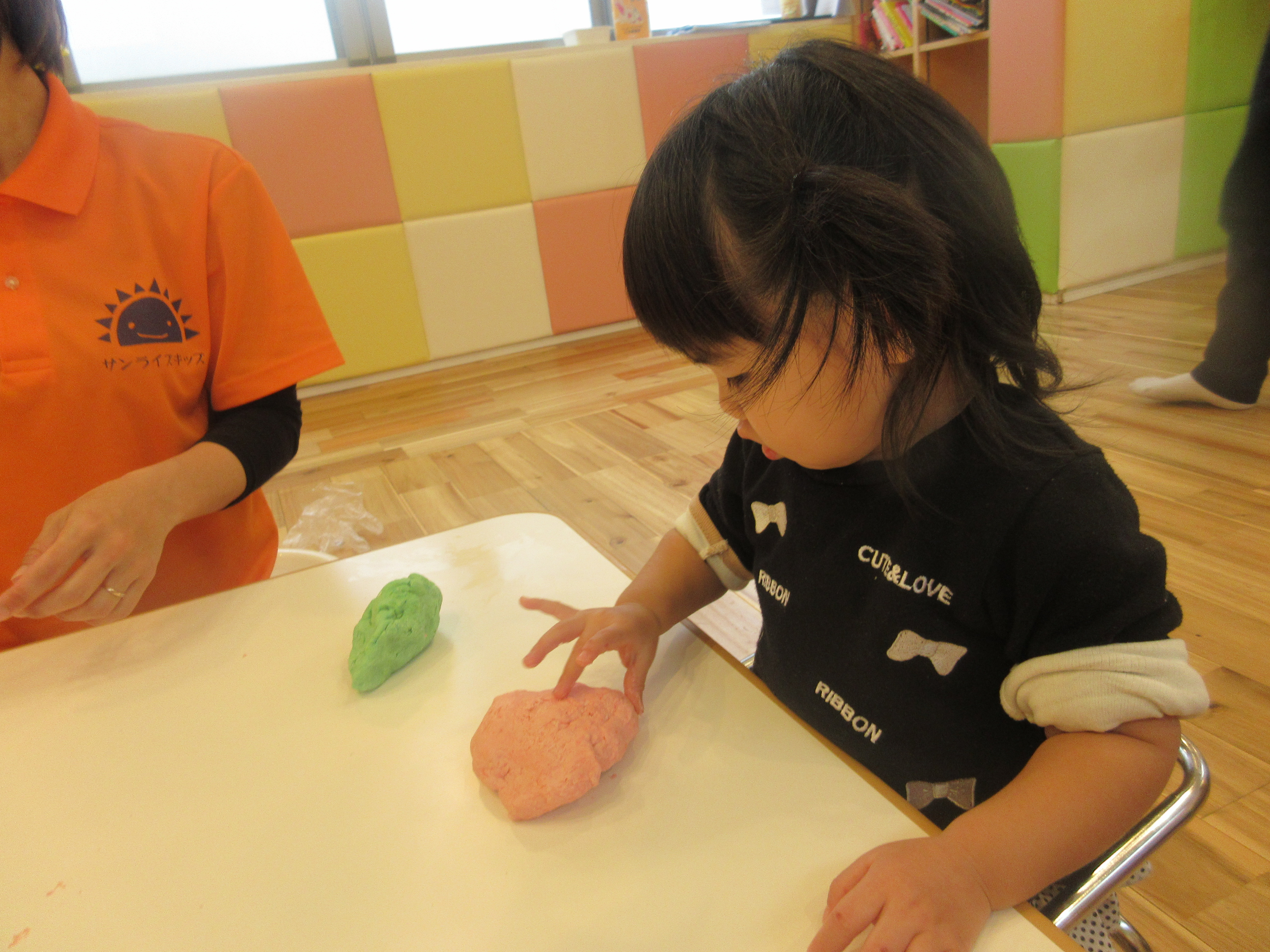 ちょっぴり柔らかい小麦粉粘土。さわり心地がとっても気持ちがいいです![]()
