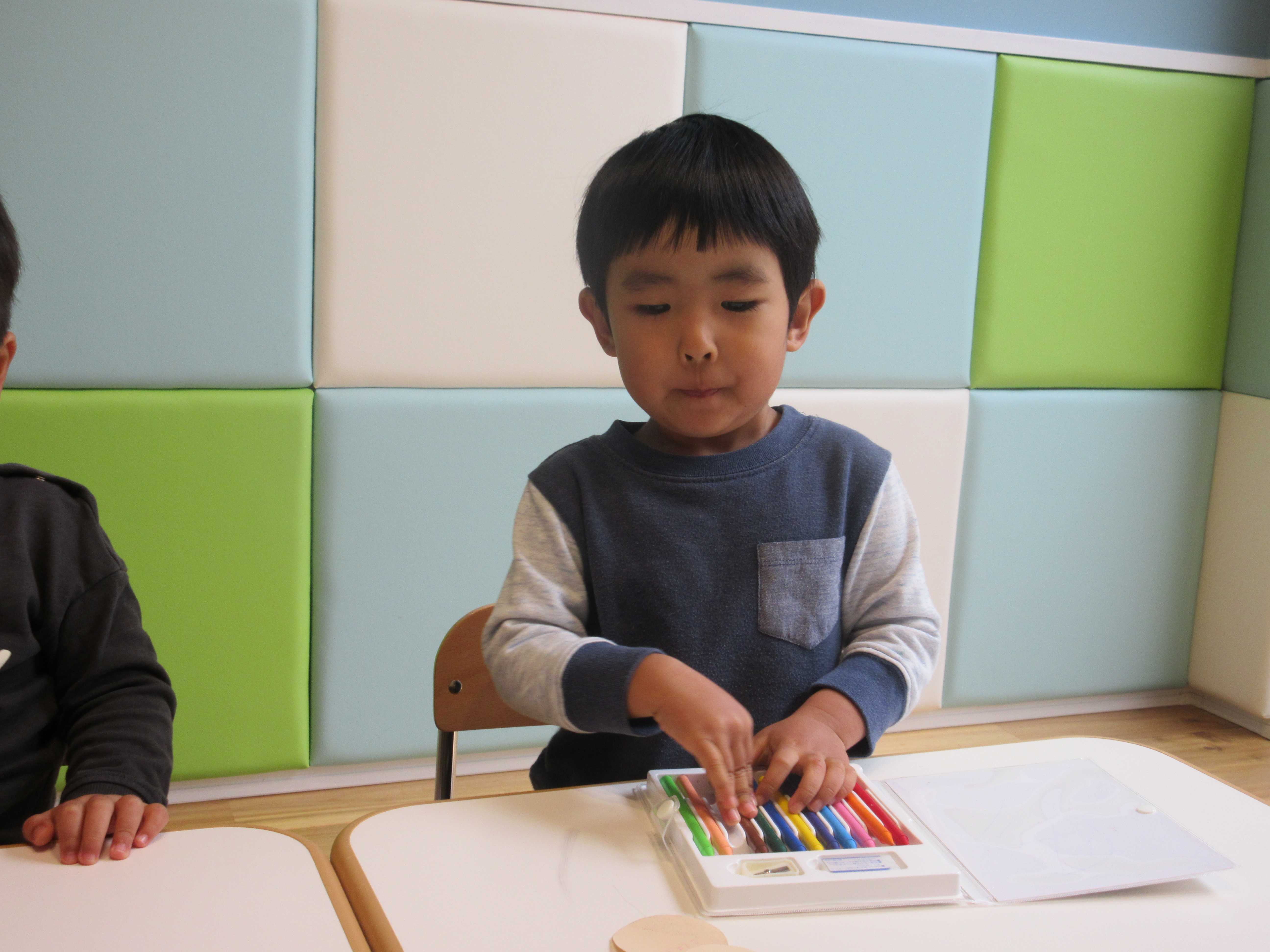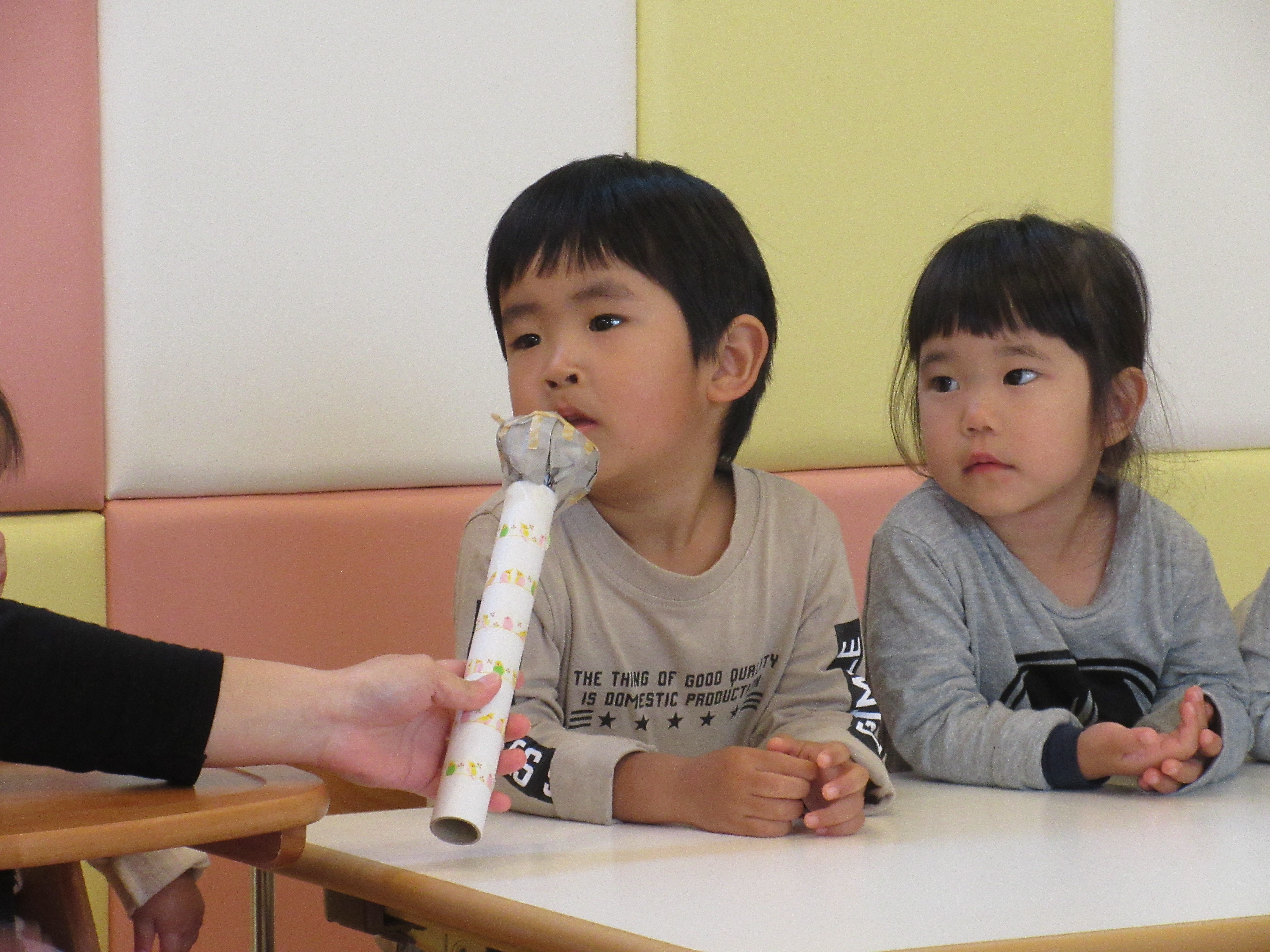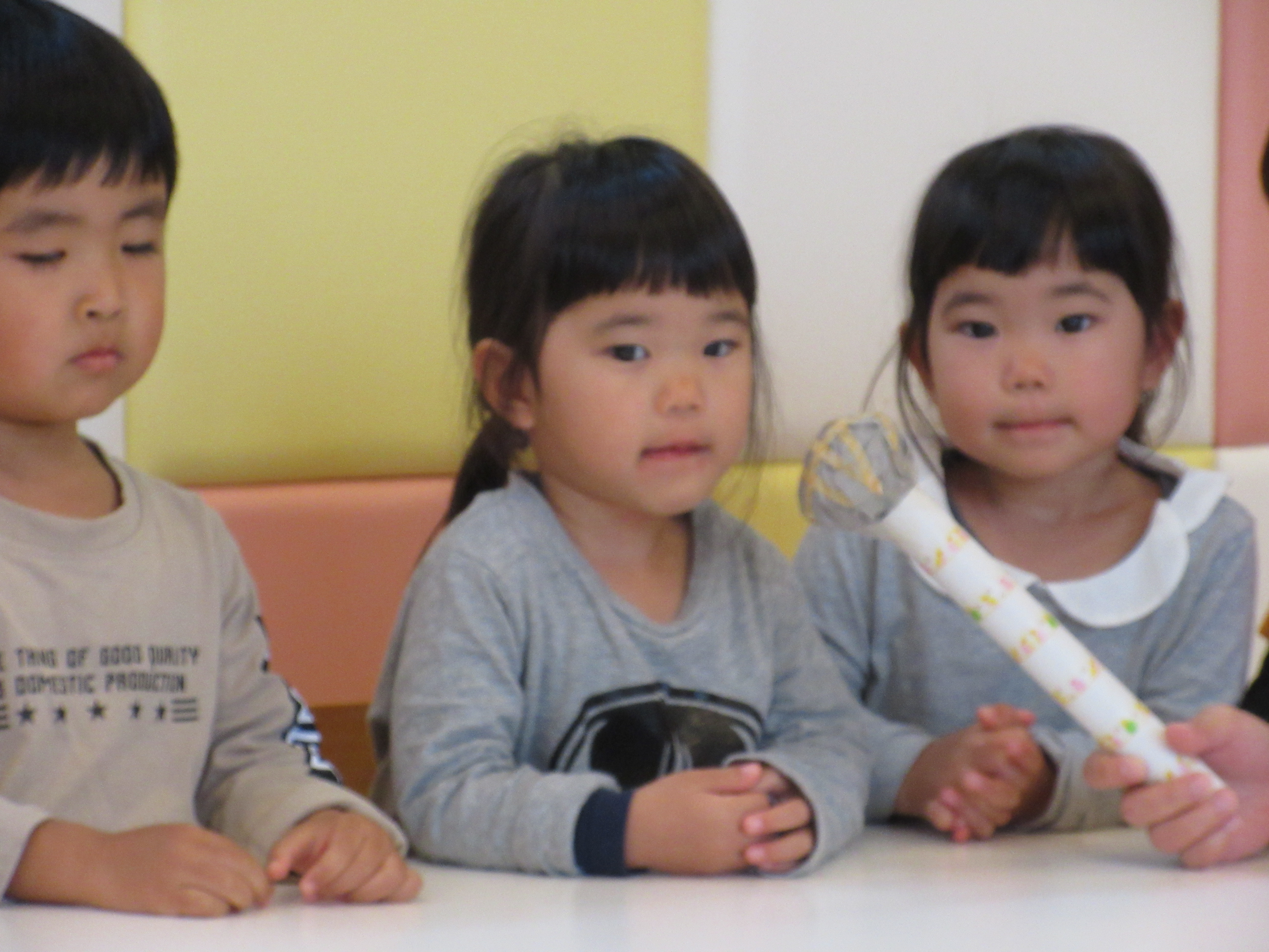 「お名前はなんですか?」と聞かれたり、「何歳ですか?」の質問に恥ずかしそうにしながらも、上手に答えていました。