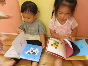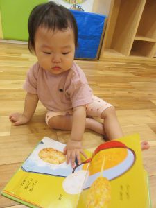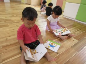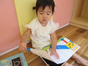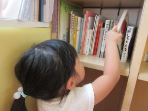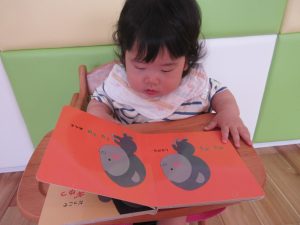 保育士の読み聞かせはもちろん、自分で絵本を手に取ったり渡した絵本をじっと