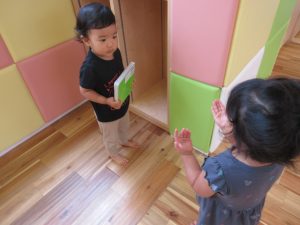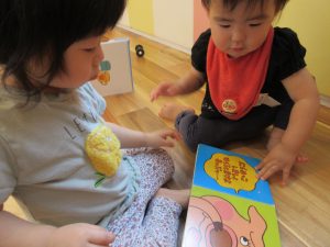 お友達の絵本も気になっちゃう!一緒に見ようね![]()