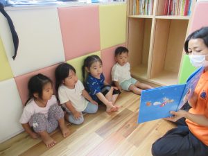 帰って来るまで絵本を読んでいます。みんな絵本が大好きなのでとっても集中していますよ![]()