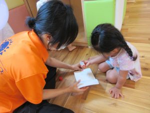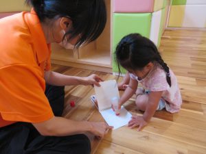 大きいお友達は進んで絵本を直すお手伝いをしてくれます。