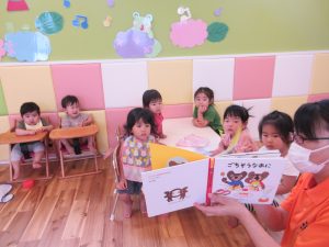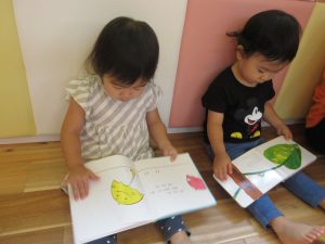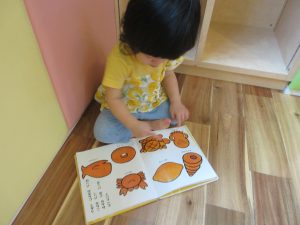 りんご組のお友達だけでなく、いちご組のお友達もどんどん自分から絵本を手に取って