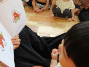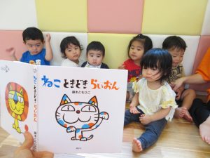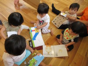 誰か一人に読み始めると、子ども達はどんどん集まってきますよ